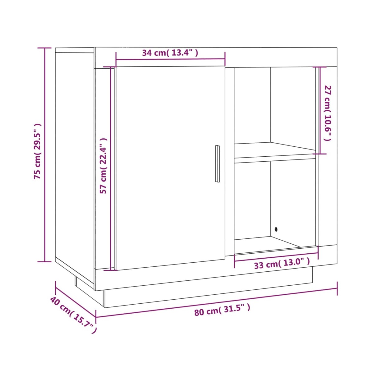 ¡Este elegante aparador mantendrá el salón y el dormitorio limpios y ordenados! Material de primera calidad: La madera contrachapada tiene una calidad excepcional con superficie lisa y también cuenta con fuerza, estabilidad y resistencia a la humedad.Más espacio de almacenamiento: El aparador posee dos estantes, que proporcionan un amplio espacio de almacenamiento para guardar ropa, sombreros, libros, documentos, joyería, etc.Función de exhibición: La robusta superficie es ideal para exhibir objetos decorativos, marcos de fotos o pequeñas plantas.Fácil de limpiar: Este aparador es fácil de limpiar con un paño húmedo. Advertencia:Para evitar el vuelco, este producto debe usarse con el dispositivo provisto para fijarlo a la pared.