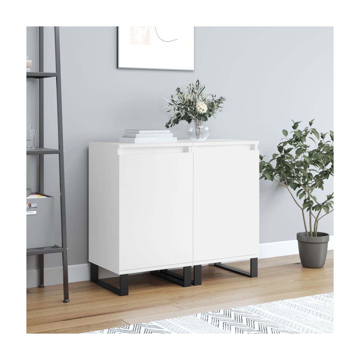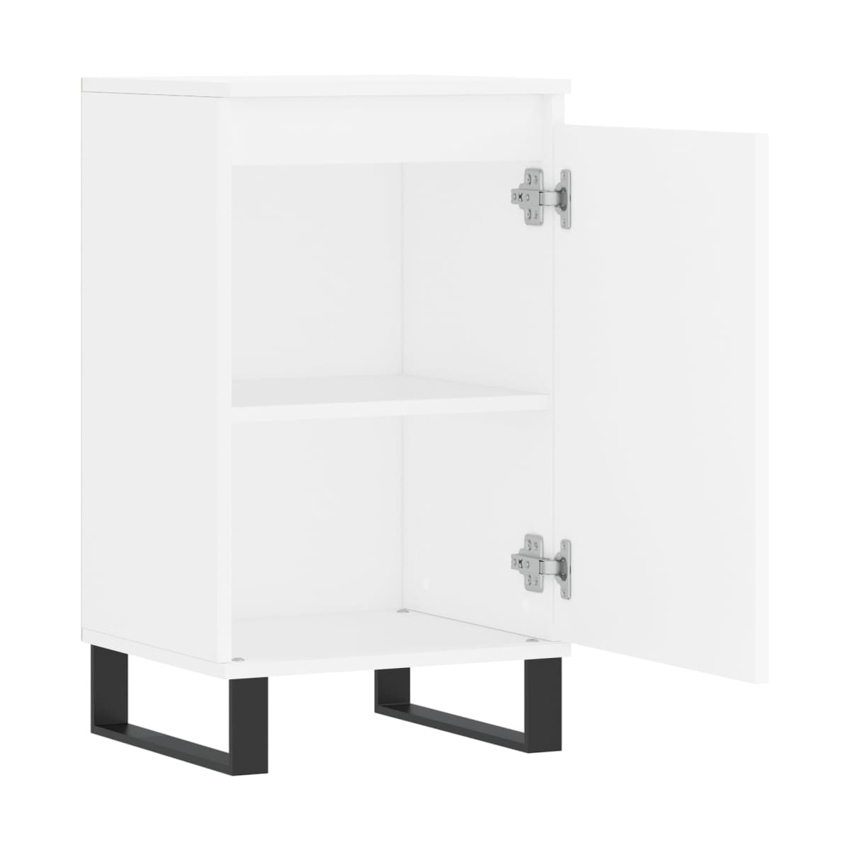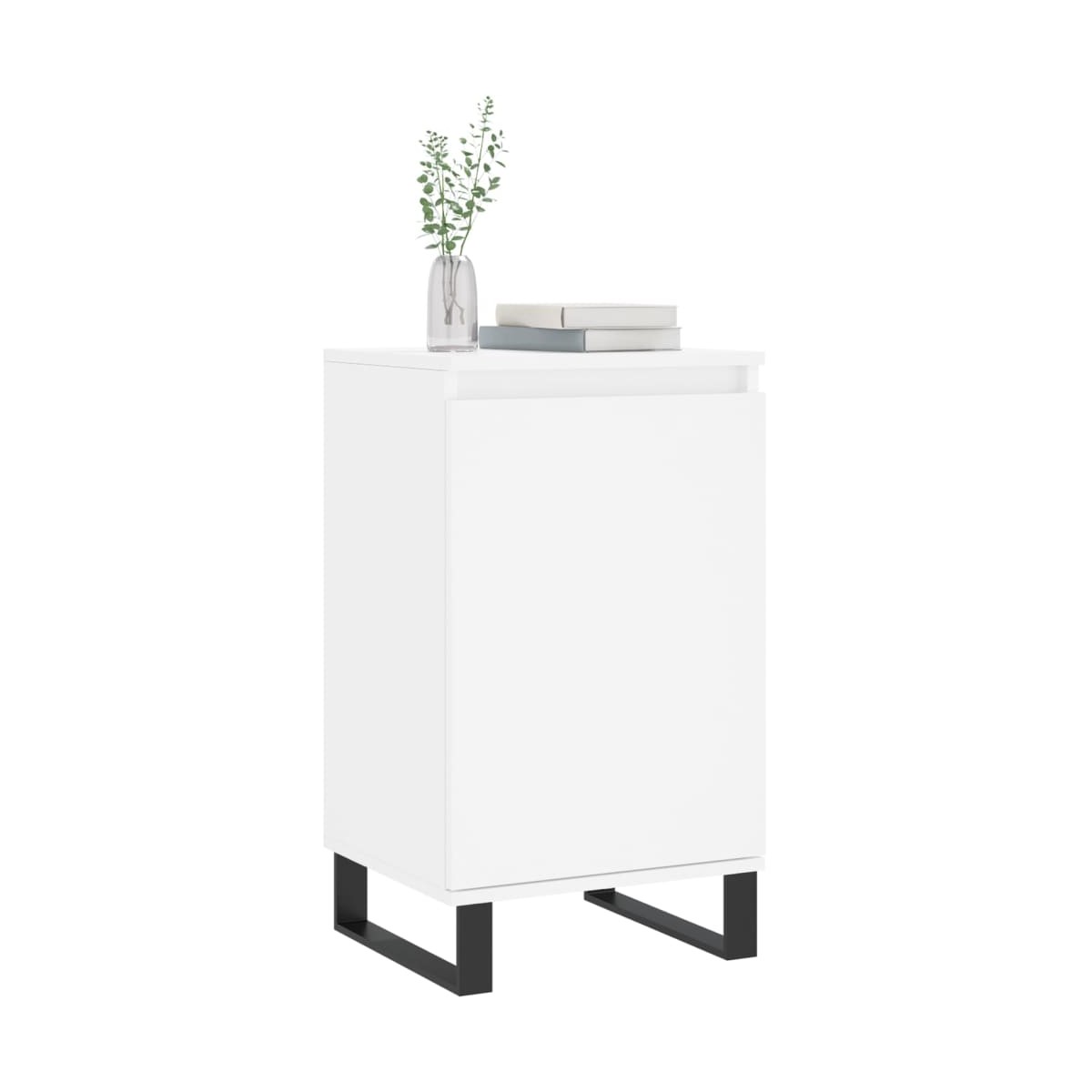 Estos aparadores de moda, con un aspecto atemporal, están destinados a ser un excelente complemento para la casa. Material duradero: La madera de ingeniería tiene una calidad excepcional, con una superficie lisa y también cuenta con fuerza, estabilidad y resistencia a la humedad.Amplio espacio de almacenaje: El aparador tiene 2 compartimentos, por lo que ofrece un amplio espacio de almacenaje para mantener tus cosas bien organizadas y al alcance.Función expositora: La parte superior del armario es perfecta para colocar plantas, fotos enmarcadas y otros elementos decorativos.Práctica puerta: Mantén tus cosas libres de polvo ocultándolas detrás de la puerta.Patas de metal: Las patas de metal le dan un estilo moderno y tranquilo a la casa mientras garantizan su estabilidad. Advertencia:Para evitar que vuelque, este producto debe usarse con el dispositivo de fijación a la pared incluido.