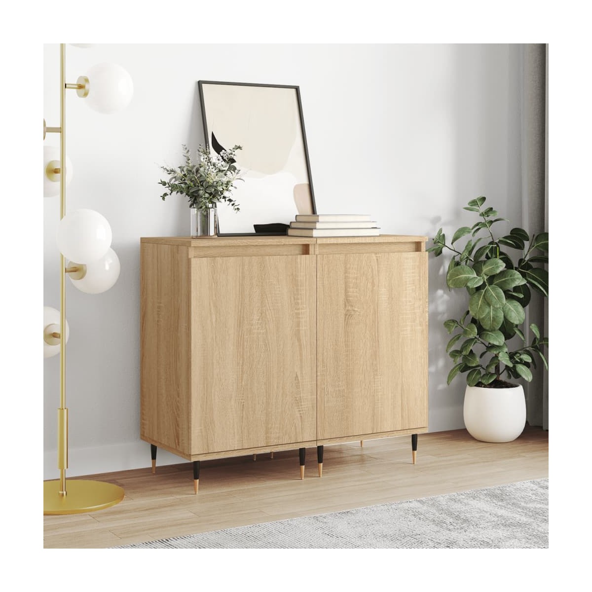 Estos aparadores de moda, con un aspecto atemporal, están destinados a ser un excelente complemento para la casa. Material duradero: La madera de ingeniería tiene una calidad excepcional, con una superficie lisa y también cuenta con fuerza, estabilidad y resistencia a la humedad.Amplio espacio de almacenaje: El aparador tiene 2 compartimentos, por lo que ofrece un amplio espacio de almacenaje para mantener tus cosas bien organizadas y al alcance.Función expositora: La parte superior del armario es perfecta para colocar plantas, fotos enmarcadas y otros elementos decorativos.Práctica puerta: Mantén tus cosas libres de polvo ocultándolas detrás de la puerta.Patas de metal: Las patas de metal le dan un estilo moderno y tranquilo a la casa mientras garantizan su estabilidad. Advertencia:Para evitar que vuelque, este producto debe usarse con el dispositivo de fijación a la pared incluido.