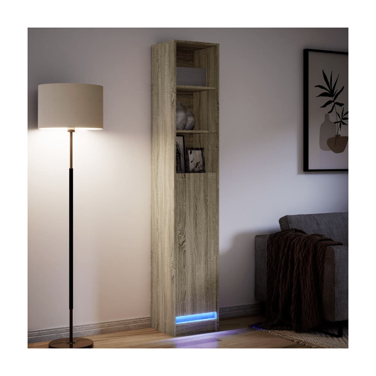 Decora el salón con este moderno aparador con luces LED, que combina fácilmente con muebles de cualquier estilo. Material duradero: La madera de ingeniería tiene una calidad excepcional, con una superficie lisa y también cuenta con fuerza, estabilidad y resistencia a la humedad.Luces LED RGB: El armario buffet está equipado con brillantes luces LED RGB. Con diversos menús personalizables, puedes cambiar el color de las luces sin problemas e incluso hacer que se ajusten automáticamente. Estas luces LED no sólo realzan el aspecto moderno del aparador, sino que también le dan un toque de moda.Amplio espacio de almacenaje: El armario de almacenaje ofrece mucho espacio para guardar a mano y en orden los artículos cotidianos.Función expositora: La resistente superficie del mueble de recibidor es ideal para exponer objetos decorativos, marcos de fotos o plantas.Puertas prácticas: Mantén tus cosas sin polvo ocultándolas tras las puertas del armario auxiliar. Información útil:El producto tiene un conector USB que necesita una fuente de alimentación USB certificada de 5 V (no incluida). Advertencia:Para evitar que vuelque, este producto debe usarse con el dispositivo de fijación a la pared suministrado.