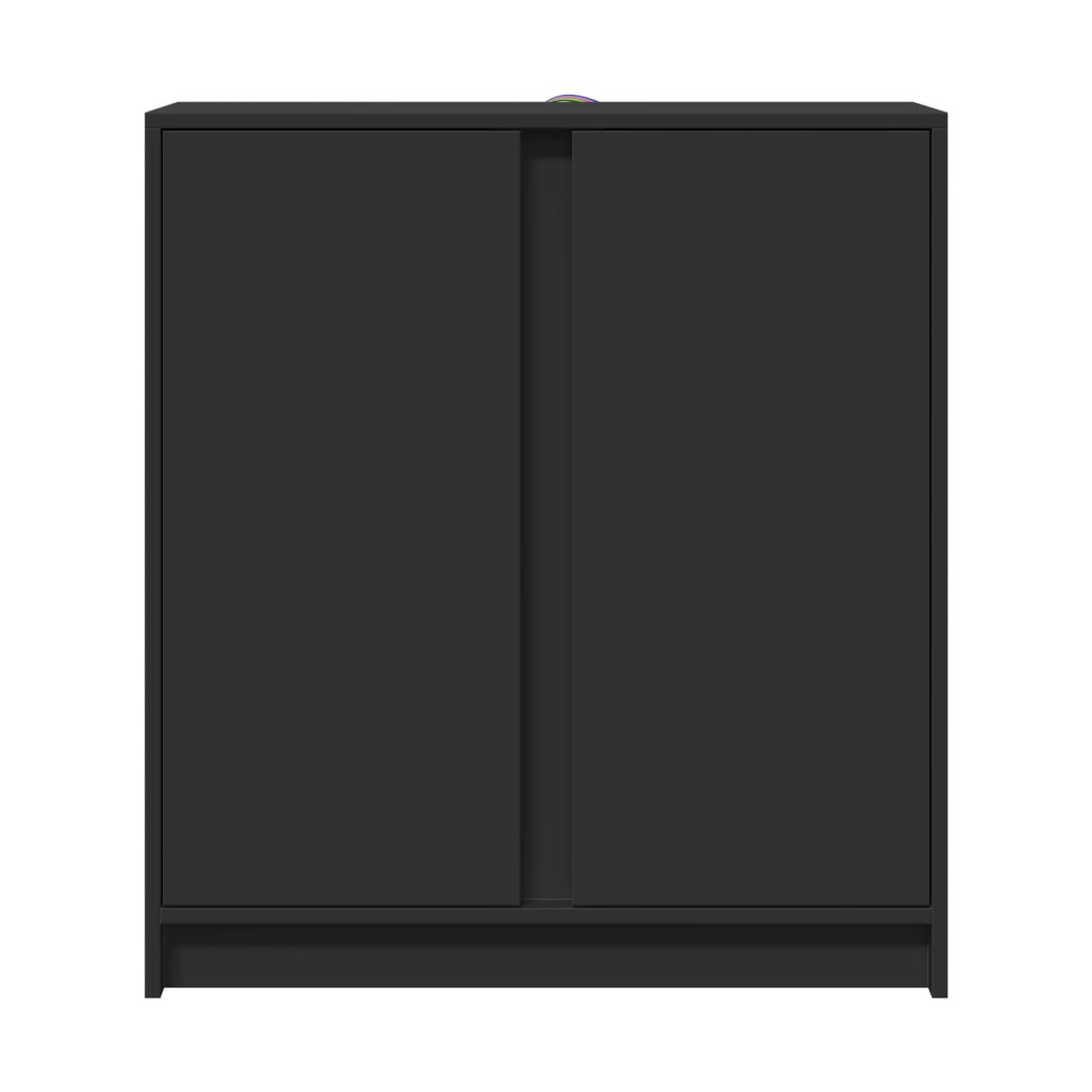 Decora el salón con este moderno aparador con luces LED, que combina fácilmente con muebles de cualquier estilo. Material duradero: La madera de ingeniería tiene una calidad excepcional, con una superficie lisa y también cuenta con fuerza, estabilidad y resistencia a la humedad.Luces LED RGB: El armario buffet está equipado con brillantes luces LED RGB. Con diversos menús personalizables, puedes cambiar el color de las luces sin problemas e incluso hacer que se ajusten automáticamente. Estas luces LED no sólo realzan el aspecto moderno del aparador, sino que también le dan un toque de moda.Amplio espacio de almacenaje: El armario de almacenaje ofrece mucho espacio para guardar a mano y en orden los artículos cotidianos.Función expositora: La resistente superficie del mueble de recibidor es ideal para exponer objetos decorativos, marcos de fotos o plantas.Puertas prácticas: Mantén tus cosas sin polvo ocultándolas tras las puertas del armario auxiliar. Información útil:El producto tiene un conector USB que necesita una fuente de alimentación USB certificada de 5 V (no incluida). Advertencia:Para evitar que vuelque, este producto debe usarse con el dispositivo de fijación a la pared suministrado.
