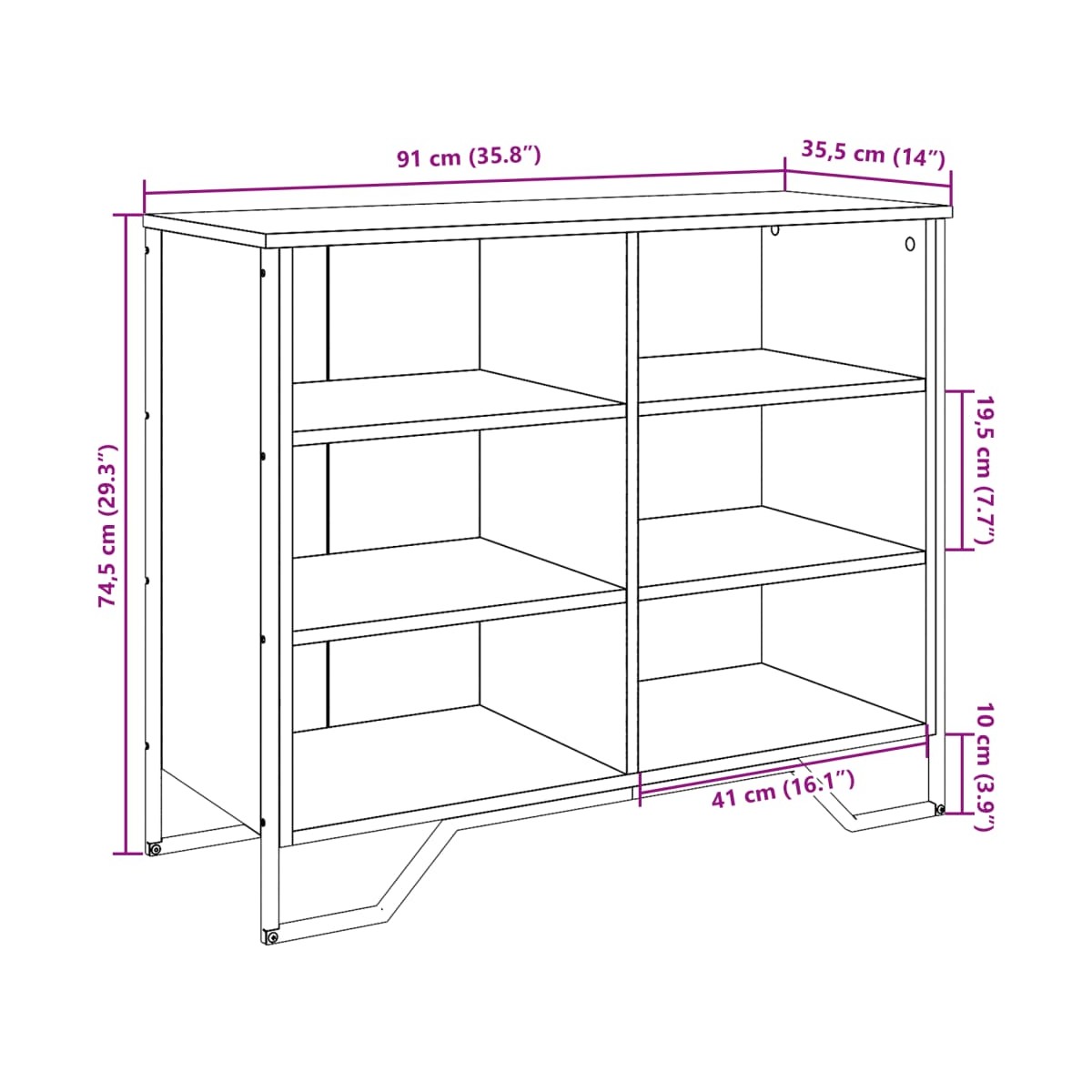 - Dimensiones totales: 91 x 35,5 x 74,5 cm (largo x ancho x alto)