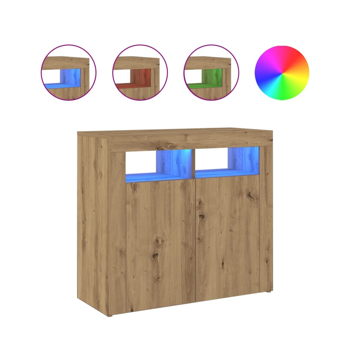 Con un diseño moderno pero práctico, este mueble auxiliar con luces LED definitivamente se convertirá en el foco de atención de tu habitación.Material duradero: La madera de ingeniería tiene una calidad excepcional, con una superficie lisa y también cuenta con fuerza, estabilidad y resistencia a la humedad.Luces LED RGB: El armario está equipado con vibrantes luces LED RGB. Con varios menús personalizables, puedes cambiar sin esfuerzo el color de las luces e incluso hacer que se ajusten automáticamente. Estas luces LED no sólo realzan el look moderno del armario, sino que también le añaden un toque de moda.Amplio espacio de almacenamiento: el gabinete de almacenamiento cuenta con un estante de vidrio y un área de almacenamiento oculta detrás de sus puertas, lo que ofrece mucho espacio para mantener sus artículos cotidianos ordenados y fácilmente accesibles.Puerta práctica: Mantén tus cosas libres de polvo al ocultarlas detrás de las puertas de este armario de entrada.Información útil:El producto tiene un conector USB que necesita una fuente de alimentación USB certificada de 5 V (no incluida).Advertencia:Para evitar que vuelque, este producto debe usarse con el dispositivo de fijación a la pared (no incluido).