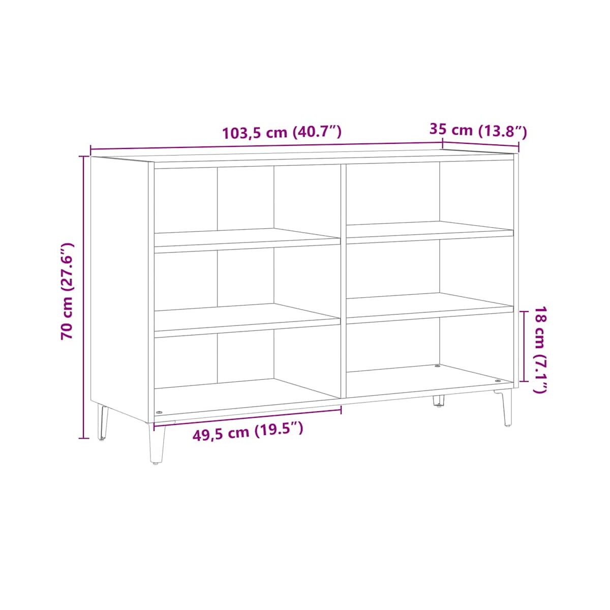 Este aparador ofrece tanto un atractivo decorativo como un práctico espacio de almacenamiento, lo que lo convierte en el complemento perfecto para tu hogar. Material estable y duradero: La madera de ingeniería es un material duradero y estable con una superficie lisa que es resistente a la humedad, la deformación y la rotura, lo que la convierte en una opción fiable para una variedad de proyectos.Amplio espacio de almacenamiento: El armario ofrece un amplio espacio de almacenamiento para los artículos de comedor y otros artículos del hogar para mantenerlos organizados y al alcance de la mano.Superficie robusta: El armario tiene un robusto tablero, sobre el que puede colocar sus objetos decorativos, álbumes de fotos o pequeñas plantas.Patas de madera: Las patas de madera confieren al mueble auxiliar un aspecto natural y agradable, al tiempo que garantizan su estabilidad.Patas de metal: Las patas metálicas añaden un estilo tranquilo a la casa a la vez que garantizan la estabilidad.Fácil de mantener: Gracias a su superficie lisa, el armario de almacenamiento es fácil de limpiar con un paño húmedo y requiere menos mantenimiento. Advertencia:Para evitar que vuelque, este producto debe usarse con el dispositivo de fijación a la pared suministrado.