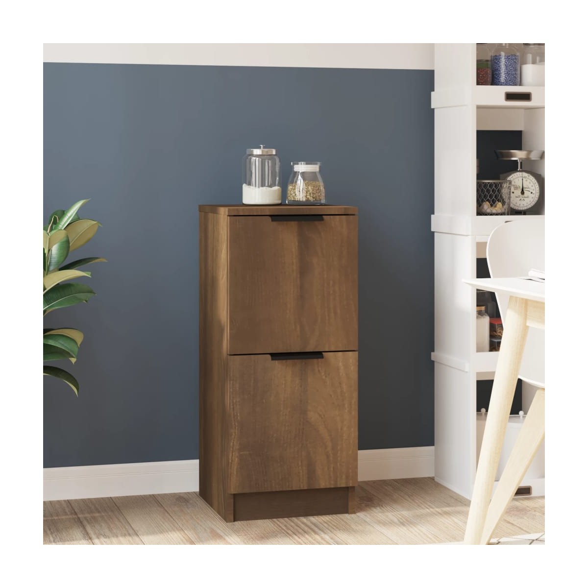 Con un encanto minimalista, este aparador está pensado para satisfacer tus necesidades y es un complemento ideal para tu habitación. Material estable: La madera contrachapada tiene una calidad excepcional, con una superficie lisa y también cuenta con fuerza, estabilidad y resistencia a la humedad.Amplio espacio de almacenamiento: El armario aparador proporciona un amplio espacio de almacenamiento para guardar cachivaches y mantener bien organizados revistas, libros, DVD y dispositivos multimedia.Armario multiusos: El aparador puede utilizarse como armario para guardar libros y colecciones, como mesa auxiliar para el salón o como mesita de noche para el dormitorio.Superficie robusta: La resistente superficie de la mesa es ideal para exponer objetos decorativos, marcos de fotos o plantas en maceta.Dos opciones de montaje: Las puertas del armario auxiliar se pueden instalar a la izquierda o a la derecha según lo que necesites. Advertencia:Para evitar el vuelco, este producto debe usarse con el dispositivo provisto para fijarlo a la pared.Nota:Cada producto viene con un manual de montaje en la caja para facilitar el montaje.