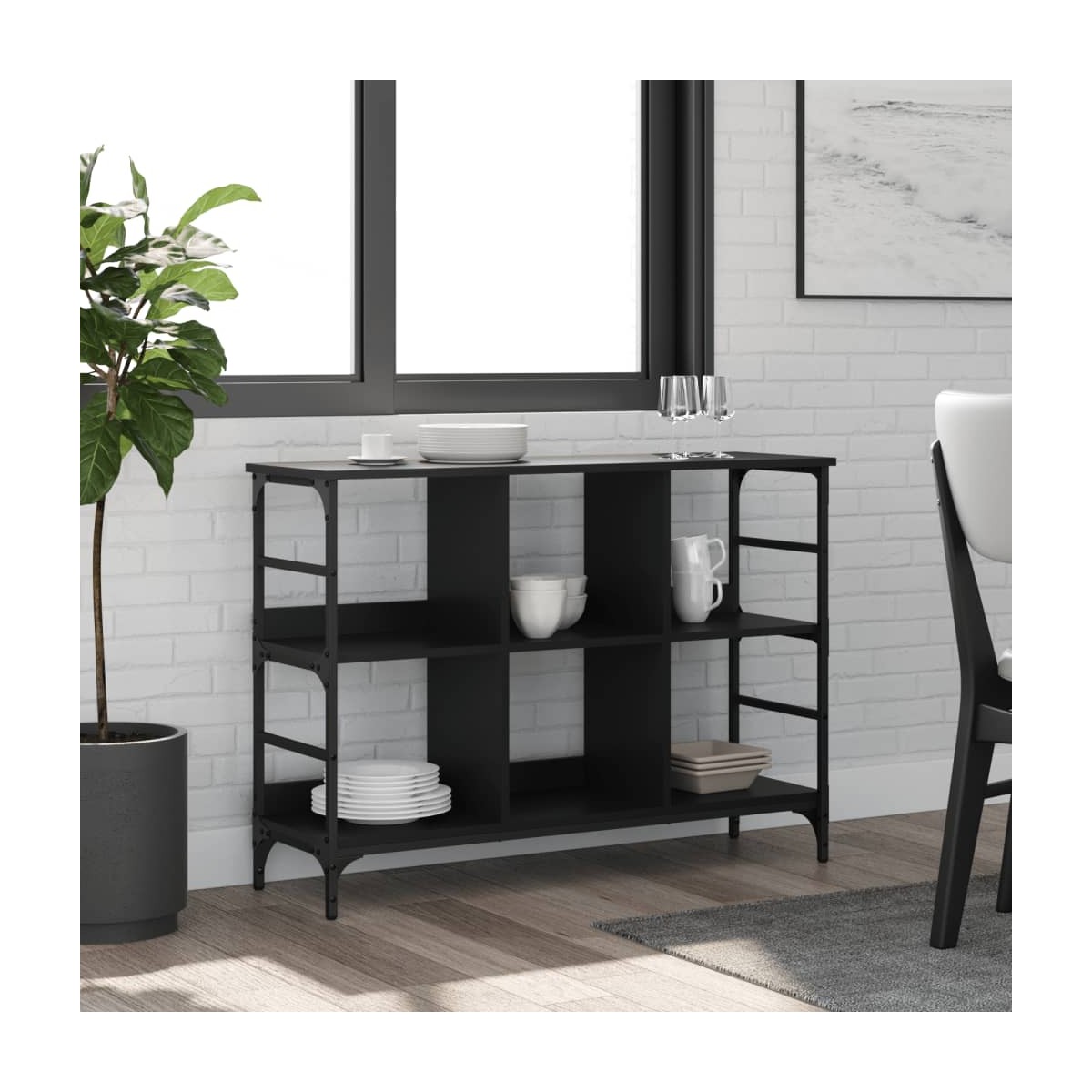 Este aparador clásico, con un aspecto atemporal, está pensado para ser un excelente aporte a tu hogar. Material duradero: La madera de ingeniería tiene una calidad excepcional, con una superficie lisa y también cuenta con fuerza, estabilidad y resistencia a la humedad. Hecho de madera contrachapada, el aparador es fácil de limpiar con un paño húmedo.Espacio de almacenamiento suficiente: El aparador ofrece un amplio espacio de almacenamiento para mantener diversos artículos de uso diario bien organizados y al alcance.Superficie robusta: El armario de almacenaje cuenta con una robusta superficie que puede ser utilizada para exponer objetos decorativos, marcos de fotos o macetas.Patas ajustables: Las patas ajustables con almohadillas de plástico mantienen el armario equilibrado sobre suelos irregulares y aumentan la estabilidad. Advertencia:Para evitar que vuelque, este producto debe usarse con el dispositivo de fijación a la pared incluido.