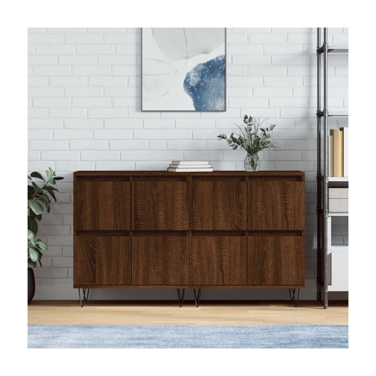 Estos aparadores clásicos, con un aspecto atemporal, están destinados a ser un excelente aporte para la casa. Material duradero: La madera contrachapada tiene una calidad excepcional, con una superficie lisa y también cuenta con fuerza, estabilidad y resistencia a la humedad.Amplio espacio de almacenaje: El armario ofrece un amplio espacio de almacenamiento para mantener tus diversos artículos de uso diario bien organizados y al alcance.Función expositora: También puedes colocar tus fotos favoritas, adornos o flores en la superficie de este mueble de almacenaje para alegrarte la vida. Advertencia:Para evitar que vuelque, este producto debe usarse con el dispositivo de fijación a la pared incluido.