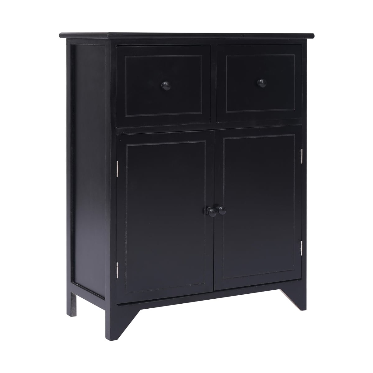 Este armario auxiliar de madera tiene un estilo clásico. Dará un toque de elegancia a tu dormitorio, hogar o salón. La superficie rectangular puede utilizarse para colocar una cesta de frutas u objetos decorativos como marcos de fotos o macetas. Además, este compacto armario posee 2 cajones que se abren y cierran suavemente y 1 compartimento con puertas, que proporcionan un amplio espacio para tener organizados y al alcance toda clase de pequeños objetos. Hecha de madera de paulownia y MDF, el armario auxiliar es duradero y fácil de montar.