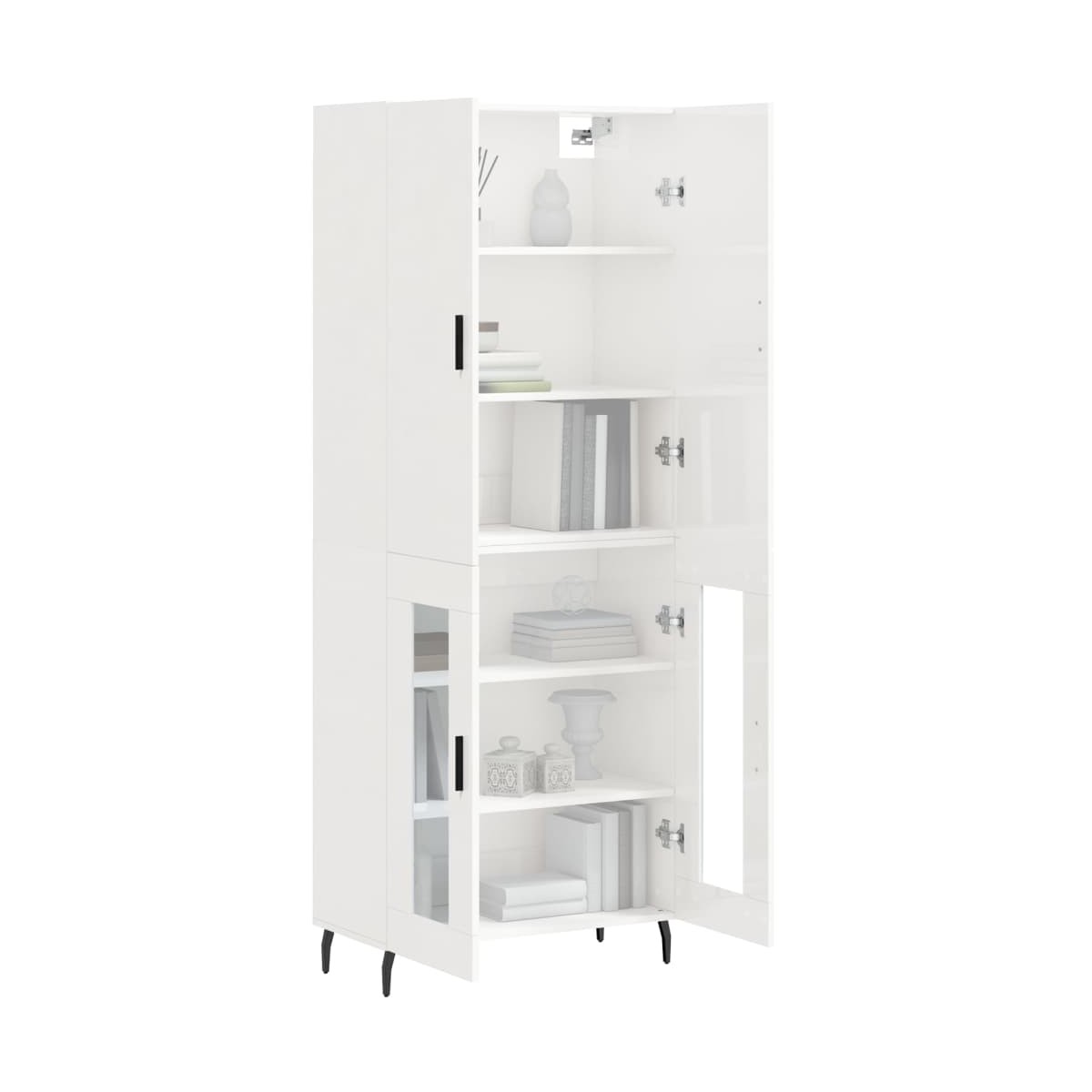 ¿Buscas un aparador elegante? ¡Este armario alto da un toque elegante a la decoración de la casa! Material duradero: La madera contrachapada tiene una calidad excepcional, con una superficie lisa y también cuenta con fuerza, estabilidad y resistencia a la humedad.Amplio espacio de almacenaje: El armario auxiliar proporciona un amplio espacio de almacenaje para mantener tus cosas del día a día bien organizadas y al alcance.Diseño de vidrio: El diseño de vidrio resalta la elegancia del armario y te permite exponer tus cosas favoritas.Puerta práctica: Mantén ordenado el espacio colocando tus cosas detrás de las puertas del mueble de almacenaje.Patas de metal: Las patas metálicas añaden un estilo tranquilo a la casa a la vez que garantizan la estabilidad. Advertencia:Para evitar que vuelque, este producto debe usarse con el dispositivo de fijación a la pared incluido. Información útil:Los tornillos y los tacos para el interior de la pared no están incluidos. Recomendamos encontrar y utilizar tornillos y tacos adecuados específicamente para las paredes. Si no estás seguro, puedes consultar con un profesional. Lee y sigue cada paso de las instrucciones.