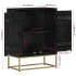 Este aparador clásico, con un aspecto atemporal, está pensado para ser un excelente aporte a tu hogar. Madera maciza de mango: La madera maciza de mango es una madera dura, tropical y resistente, que sirve para hacer muebles robustos. Las bonitas vetas de la madera hacen que cada mueble sea ligeramente diferente al resto.Amplio espacio de almacenaje: Equipado con 2 compartimentos, el armario ofrece un amplio espacio de almacenamiento para guardar organizadas y a mano las cosas del día a día.Función de exhibición: La superficie del mueble aparador va genial para colocar objetos decorativos, álbumes de fotos o pequeñas plantas. Información útil:Los colores y las vetas varían en cada artículo, por lo que cada pieza es única. La entrega es aleatoria, asegurando la exclusividad e individualidad del producto. Advertencia:Para evitar que vuelque, este producto debe usarse con el dispositivo de fijación a la pared incluido.