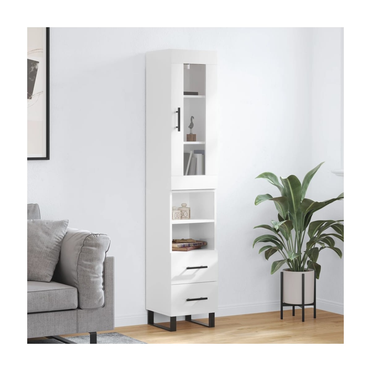 ¿Buscas un aparador elegante? ¡Este armario alto da un toque elegante a la decoración de la casa! Material duradero: La madera contrachapada tiene una calidad excepcional, con una superficie lisa y también cuenta con fuerza, estabilidad y resistencia a la humedad.Amplio espacio de almacenamiento: El mueble ofrece un amplio espacio de almacenaje para mantener tus diversos artículos de uso diario bien organizados y al alcance.Puerta práctica: Mantén ordenado el espacio colocando tus cosas detrás de la puerta del mueble de almacenaje.Patas de metal: Las patas metálicas añaden un estilo tranquilo a la casa a la vez que garantizan la estabilidad. Advertencia:Para evitar que vuelque, este producto debe usarse con el dispositivo de fijación a la pared incluido. Información útil:Los tornillos y los tacos para el interior de la pared no están incluidos. Recomendamos encontrar y utilizar tornillos y tacos adecuados específicamente para las paredes. Si no estás seguro, puedes consultar con un profesional. Lee y sigue cada paso de las instrucciones.