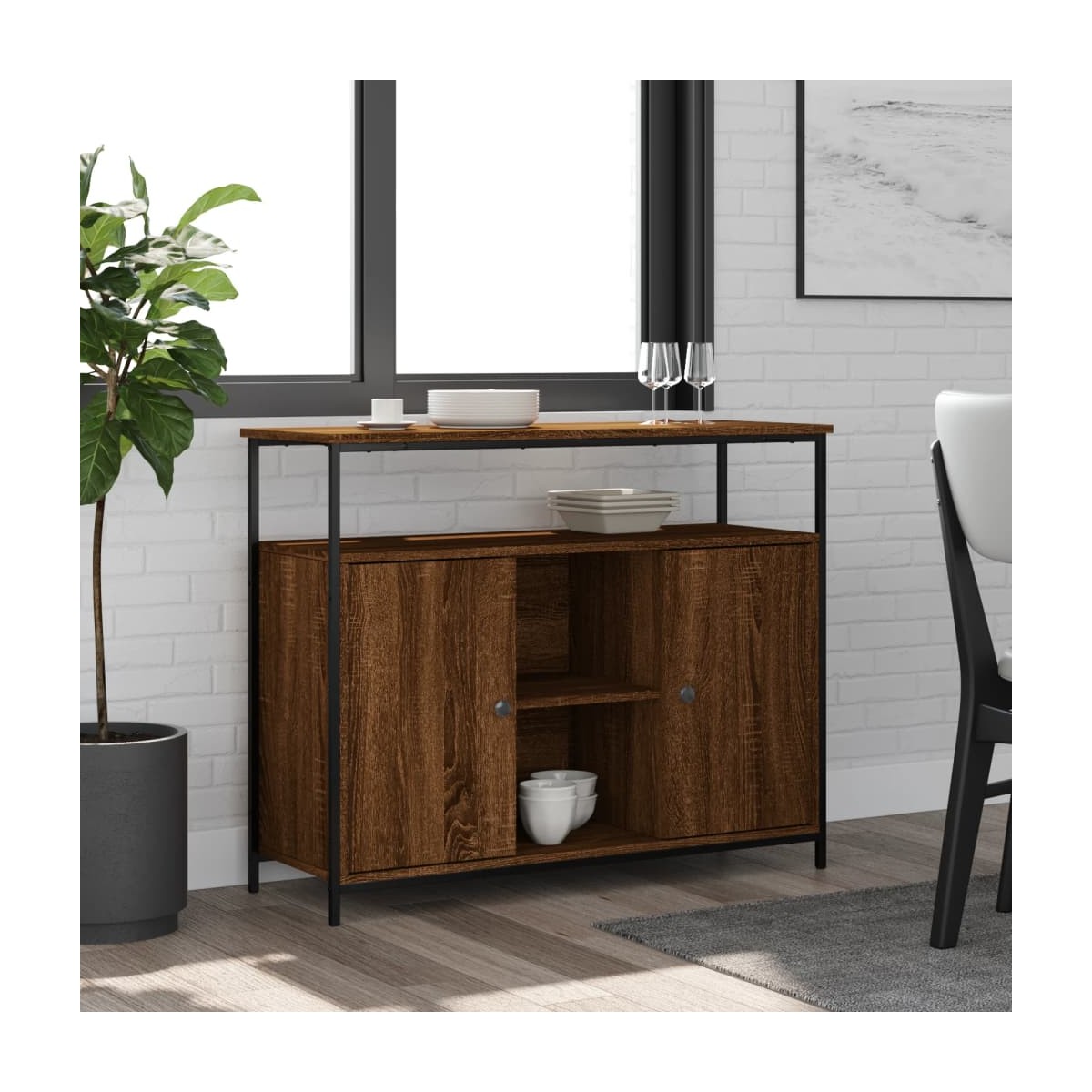 Este aparador clásico, con un aspecto atemporal, está pensado para ser un excelente aporte a tu hogar. Material duradero: La madera de ingeniería tiene una calidad excepcional, con una superficie lisa y también cuenta con fuerza, estabilidad y resistencia a la humedad. Hecho de madera contrachapada, el aparador es fácil de limpiar con un paño húmedo.Amplio espacio de almacenaje: El mueble de almacenaje ofrece un amplio espacio para mantener las cosas del día a día bien organizadas y al alcance.Función de exhibición: La parte superior del aparador es ideal para exhibir artículos decorativos, álbumes de fotos o plantas pequeñas.Patas ajustables: Las cuatro patas regulables con tacos de plástico mantienen equilibrada el mueble de almacenamiento sobre suelos irregulares y aumentan su estabilidad. Advertencia:Para evitar que vuelque, este producto debe usarse con el dispositivo de fijación a la pared incluido.