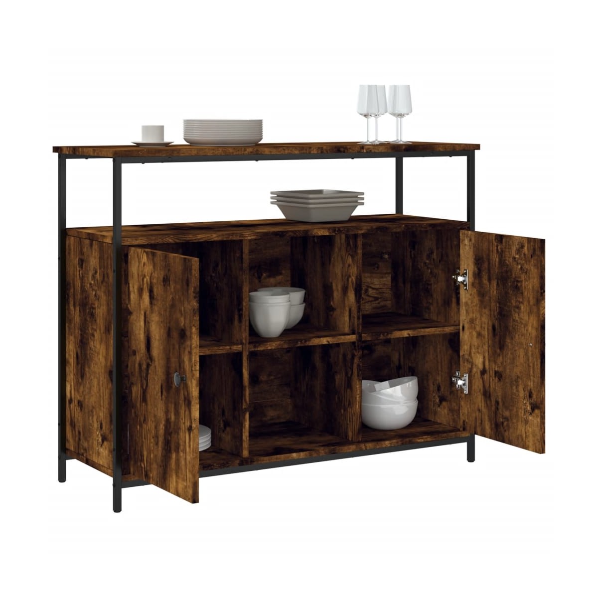 Este aparador clásico, con un aspecto atemporal, está pensado para ser un excelente aporte a tu hogar. Material duradero: La madera de ingeniería tiene una calidad excepcional, con una superficie lisa y también cuenta con fuerza, estabilidad y resistencia a la humedad. Hecho de madera contrachapada, el aparador es fácil de limpiar con un paño húmedo.Amplio espacio de almacenaje: El mueble de almacenaje ofrece un amplio espacio para mantener las cosas del día a día bien organizadas y al alcance.Función de exhibición: La parte superior del aparador es ideal para exhibir artículos decorativos, álbumes de fotos o plantas pequeñas.Patas ajustables: Las cuatro patas regulables con tacos de plástico mantienen equilibrada el mueble de almacenamiento sobre suelos irregulares y aumentan su estabilidad. Advertencia:Para evitar que vuelque, este producto debe usarse con el dispositivo de fijación a la pared incluido.