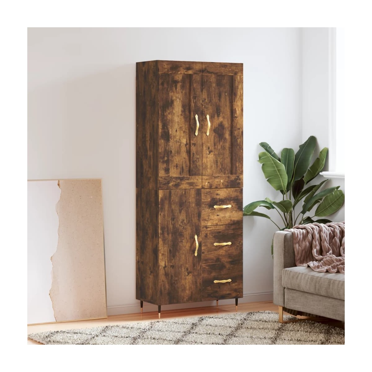 ¿Buscas un aparador elegante? ¡Este armario alto da un toque elegante a la decoración de la casa! Material duradero: La madera contrachapada tiene una calidad excepcional, con una superficie lisa y también cuenta con fuerza, estabilidad y resistencia a la humedad.Amplio espacio de almacenamiento: El mueble ofrece un amplio espacio de almacenaje para mantener tus diversos artículos de uso diario bien organizados y al alcance.Puertas prácticas: Mantén ordenado el espacio colocando tus cosas detrás de las puertas del mueble de almacenaje.Patas de metal: Las patas metálicas añaden un estilo tranquilo a la casa a la vez que garantizan la estabilidad. Advertencia:Para evitar que vuelque, este producto debe usarse con el dispositivo de fijación a la pared incluido. Información útil:Los tornillos y los tacos para el interior de la pared no están incluidos. Recomendamos encontrar y utilizar tornillos y tacos adecuados específicamente para las paredes. Si no estás seguro, puedes consultar con un profesional. Lee y sigue cada paso de las instrucciones.