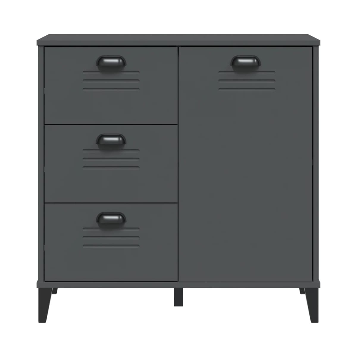 Este clásico aparador de madera con un diseño industrial está pensado para satisfacer tus necesidades y es un excelente complemento para tu habitación. Madera maciza de pino: La madera maciza de pino es un bonito material natural. La madera de pino tiene vetas rectas, y los nudos dan al material su distintivo aspecto rústico. Hecho de madera maciza de pino, el armario es duradero y resistente.Amplio espacio de almacenamiento: El buffet ofrece suficiente espacio de almacenamiento para mantener tus artículos esenciales bien organizados y al alcance de la mano.Función de exposición: La robusta parte superior del mueble es ideal para exponer plantas, fotos enmarcadas y otros objetos decorativos.Práctico tirador: El mueble viene con tiradores que facilitan la apertura y el cierre a la vez que añaden un extra de belleza. Advertencia:Para evitar que vuelque, este producto debe usarse con el dispositivo de fijación a la pared suministrado.