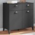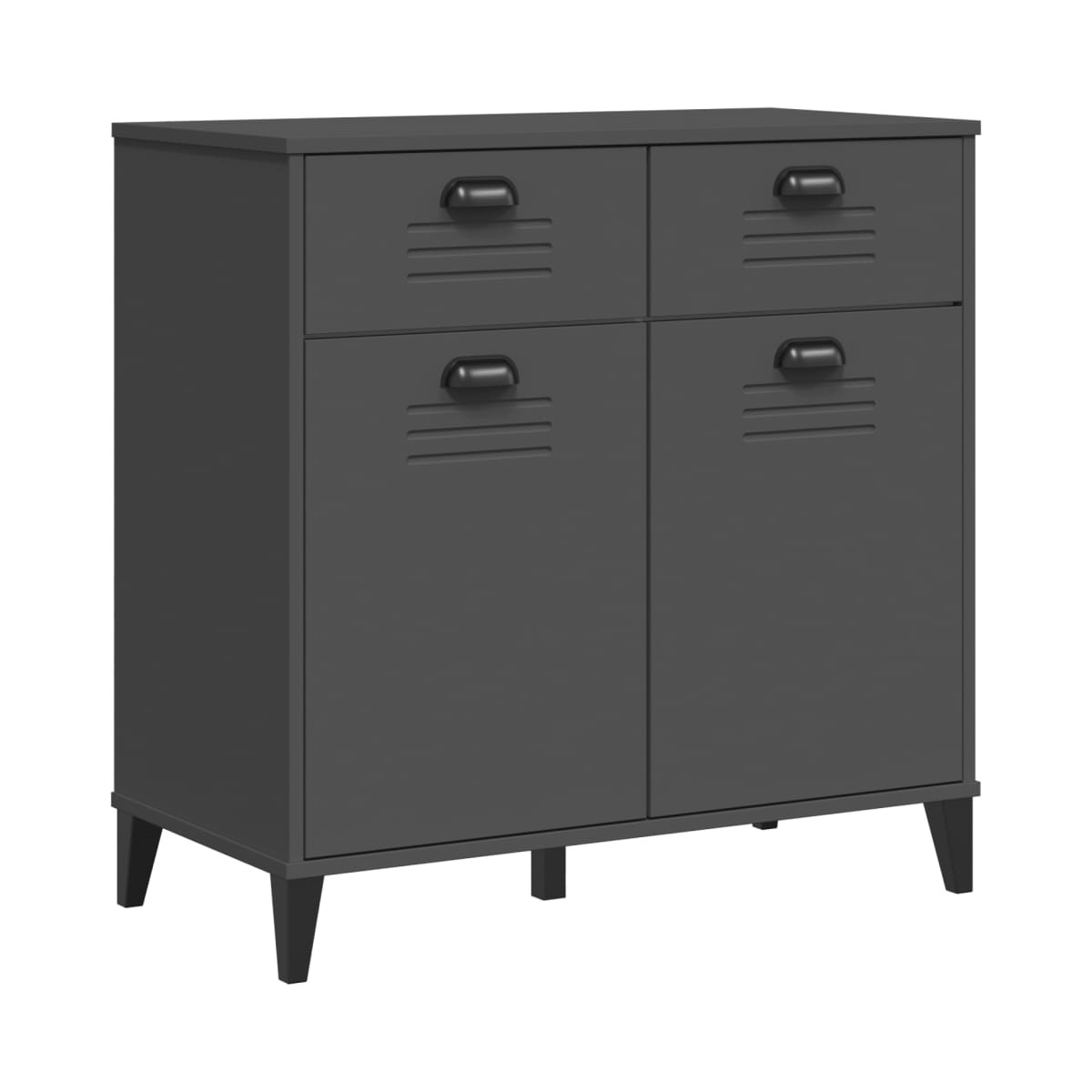 Este clásico aparador de madera con un diseño industrial está pensado para satisfacer tus necesidades y es un excelente complemento para tu habitación. Madera maciza de pino: La madera maciza de pino es un bonito material natural. La madera de pino tiene vetas rectas, y los nudos dan al material su distintivo aspecto rústico. Hecho de madera maciza de pino, el armario es duradero y resistente.Amplio espacio de almacenamiento: El buffet ofrece suficiente espacio de almacenamiento para mantener tus artículos esenciales bien organizados y al alcance de la mano.Función de exposición: La robusta parte superior del mueble es ideal para exponer plantas, fotos enmarcadas y otros objetos decorativos.Práctico tirador: El mueble viene con tiradores que facilitan la apertura y el cierre a la vez que añaden un extra de belleza. Advertencia:Para evitar que vuelque, este producto debe usarse con el dispositivo de fijación a la pared suministrado.