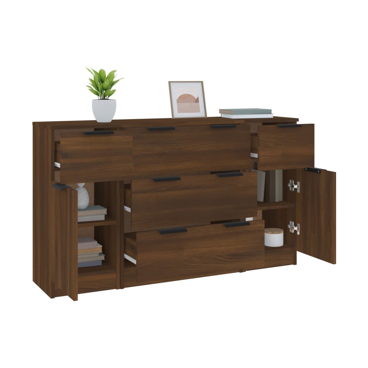 Con un encanto minimalista, estos aparadores están pensados para satisfacer tus necesidades y son un complemento ideal para tu habitación. Material fácil de limpiar: Hechos de madera contrachapada, los muebles son fáciles de limpiar. La madera contrachapada tiene una calidad excepcional, con una superficie lisa y también con fuerza, estabilidad y resistencia a la humedad.Amplio espacio de almacenamiento: Los aparadores brindan un gran espacio de almacenamiento, lo que facilita mantener las cosas bien organizadasDiseño a la moda: Los elegantes aparadores cuentan con líneas limpias y un aspecto minimalista que da un toque moderno a la decoración. Nota:Cada producto viene con un manual de montaje en la caja para facilitar el montaje. Advertencia:Para evitar que vuelquen, estos productos deben utilizarse con el dispositivo de fijación a la pared proporcionado.