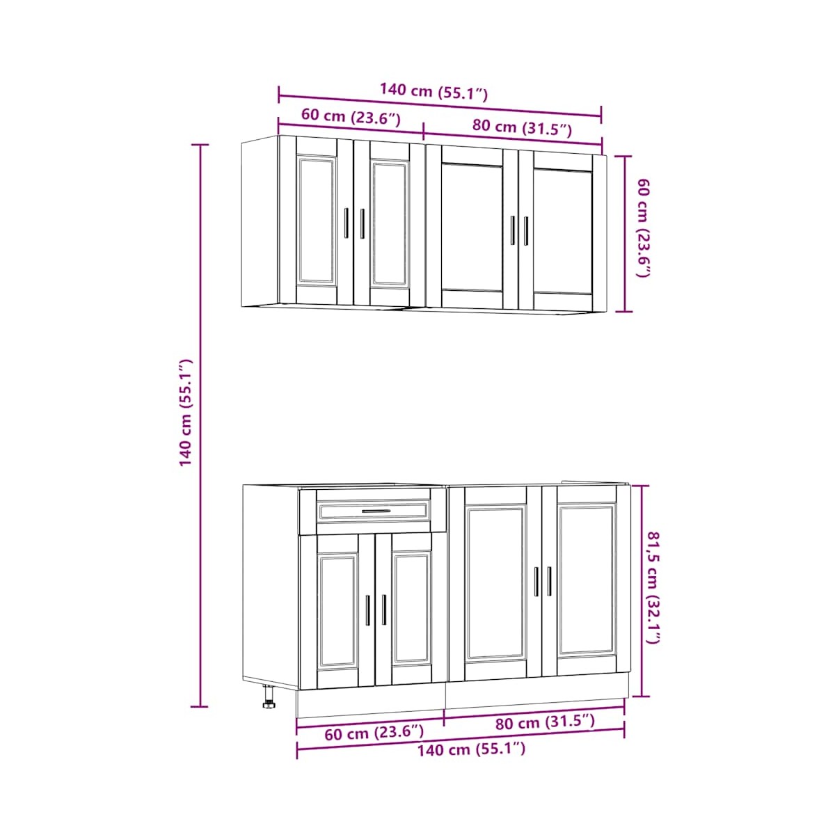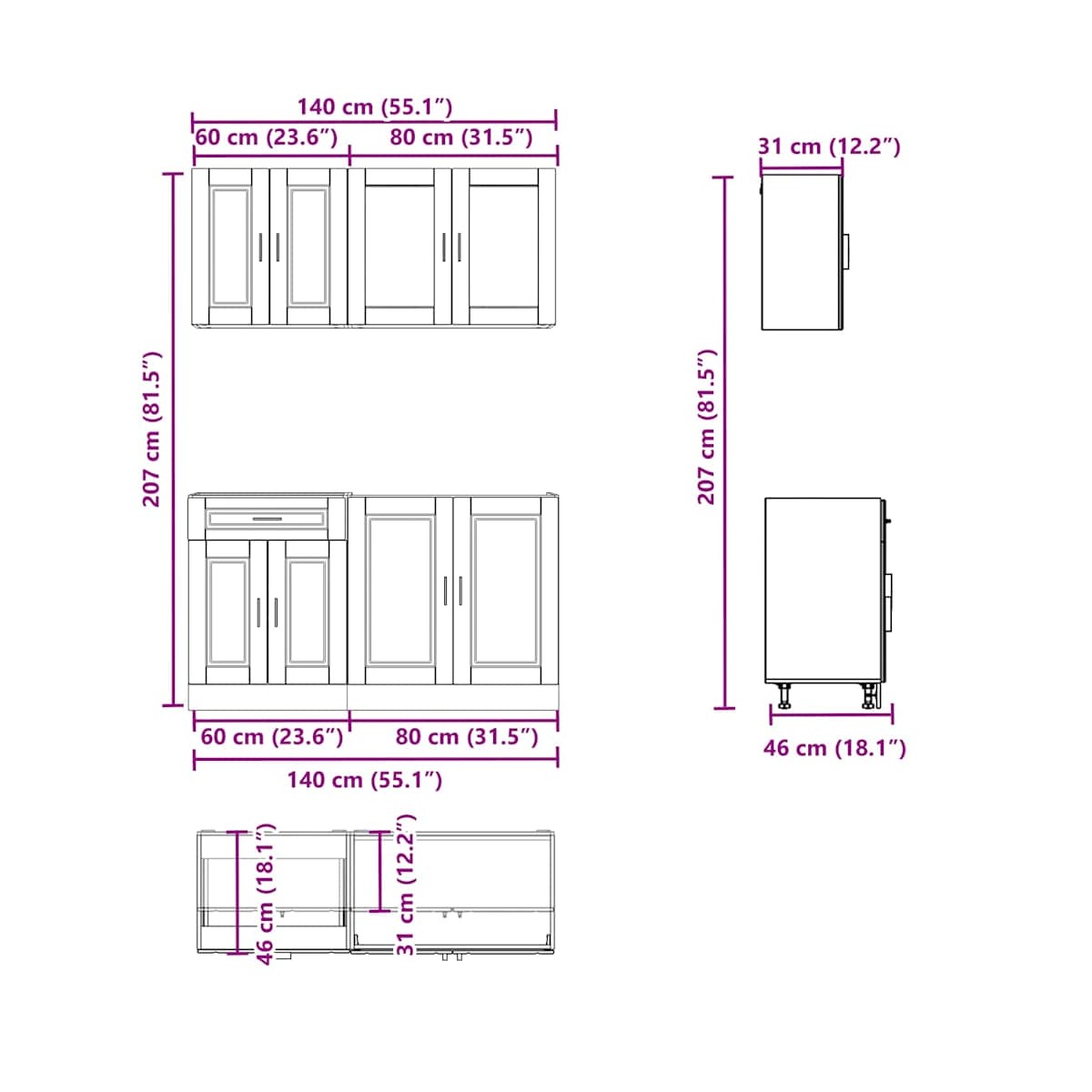 Este juego de 4 armarios de cocina, con un diseño elegante, optimiza el espacio de la cocina y ¡proporciona amplio espacio de almacenaje para tus cosas! Material estable y duradero: La madera de ingeniería es un material duradero y estable con una superficie lisa que es resistente a la humedad, la deformación y la rotura, lo que la convierte en una opción fiable para una variedad de proyectos.Amplio espacio de almacenamiento: el juego de gabinetes de cocina tiene muchos compartimentos y ofrece suficiente espacio para guardar tazones, platos, ollas y otros electrodomésticos de cocina.Patas ajustables: Los gabinetes inferiores cuentan con patas ajustables que se pueden ajustar en altura para adaptarse al diseño de su cocina.Fácil de mantener: Gracias a su superficie lisa, estos gabinetes de cocina son fáciles de limpiar con un paño húmedo y requieren menos mantenimiento. Advertencia:Para evitar que vuelque, este producto debe usarse con el dispositivo de fijación a la pared suministrado. Información útil:Los tornillos y los tacos para el interior de la pared no están incluidos. Busca y utiliza tornillos y tacos adecuados para tus paredes. Si no lo tienes claro, busca asesoramiento profesional. Lee y sigue cada paso de las instrucciones cuidadosamente.La encimera, el fregadero y el grifo no están incluidos en la entrega.