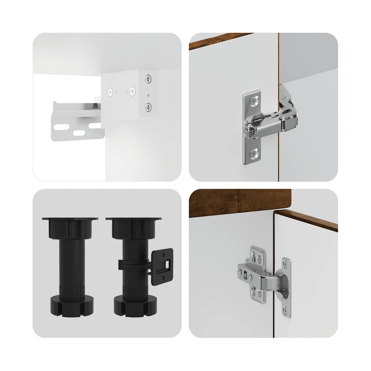 Este juego de 4 armarios de cocina, con un diseño elegante, optimiza el espacio de la cocina y ¡proporciona amplio espacio de almacenaje para tus cosas! Material estable y duradero: La madera de ingeniería es un material duradero y estable con una superficie lisa que es resistente a la humedad, la deformación y la rotura, lo que la convierte en una opción fiable para una variedad de proyectos.Amplio espacio de almacenamiento: el juego de gabinetes de cocina tiene muchos compartimentos y ofrece suficiente espacio para guardar tazones, platos, ollas y otros electrodomésticos de cocina.Patas ajustables: Los gabinetes inferiores cuentan con patas ajustables que se pueden ajustar en altura para adaptarse al diseño de su cocina.Fácil de mantener: Gracias a su superficie lisa, estos gabinetes de cocina son fáciles de limpiar con un paño húmedo y requieren menos mantenimiento. Advertencia:Para evitar que vuelque, este producto debe usarse con el dispositivo de fijación a la pared suministrado. Información útil:Los tornillos y los tacos para el interior de la pared no están incluidos. Busca y utiliza tornillos y tacos adecuados para tus paredes. Si no lo tienes claro, busca asesoramiento profesional. Lee y sigue cada paso de las instrucciones cuidadosamente.La encimera, el fregadero y el grifo no están incluidos en la entrega.