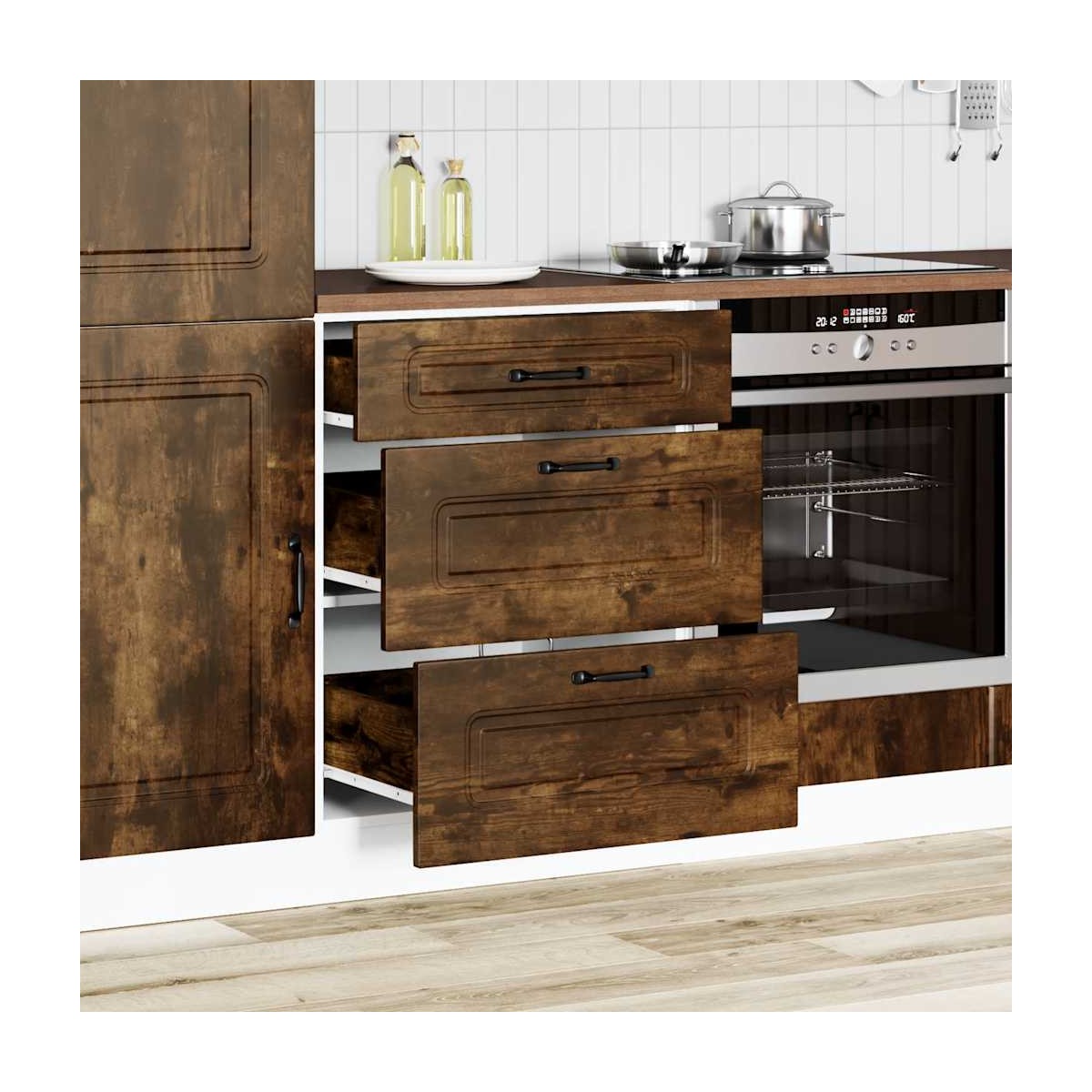 ¡Este gabinete base de cocina optimiza el espacio de su cocina y le brinda amplio espacio de almacenamiento para sus pertenencias personales! Material estable y duradero: La madera de ingeniería es un material duradero y estable con una superficie lisa que es resistente a la humedad, la deformación y la rotura, lo que la convierte en una opción fiable para una variedad de proyectos.Amplio espacio de almacenamiento: el gabinete base de la cocina ofrece suficiente espacio para guardar cuencos, platos, ollas y otros electrodomésticos de cocina.Puertas prácticas: la puerta ayuda a mantener un espacio limpio y organizado al ocultar los electrodomésticos de la cocina y el desorden detrás de ellos.Patas ajustables: las patas de este gabinete se pueden ajustar en altura para adaptarse al diseño de su cocina.Fácil de mantener: gracias a su superficie lisa, este mueble base de cocina es fácil de limpiar con un paño húmedo y requiere menos mantenimiento. Advertencia:Para evitar el vuelco, este producto debe usarse con el dispositivo provisto para fijarlo a la pared. Información útil:Los tornillos y los tacos para el interior de la pared no están incluidos. Busca y utiliza tornillos y tacos adecuados para tus paredes. Si no lo tienes claro, busca asesoramiento profesional. Lee y sigue cada paso de las instrucciones cuidadosamente.