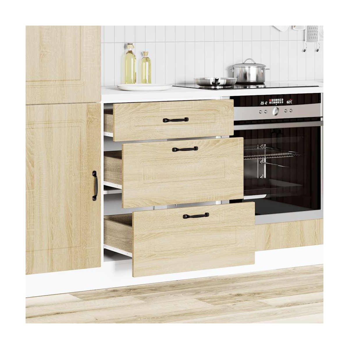 ¡Este gabinete base de cocina optimiza el espacio de su cocina y le brinda amplio espacio de almacenamiento para sus pertenencias personales! Material estable y duradero: La madera de ingeniería es un material duradero y estable con una superficie lisa que es resistente a la humedad, la deformación y la rotura, lo que la convierte en una opción fiable para una variedad de proyectos.Amplio espacio de almacenamiento: el gabinete base de la cocina ofrece suficiente espacio para guardar cuencos, platos, ollas y otros electrodomésticos de cocina.Puertas prácticas: la puerta ayuda a mantener un espacio limpio y organizado al ocultar los electrodomésticos de la cocina y el desorden detrás de ellos.Patas ajustables: las patas de este gabinete se pueden ajustar en altura para adaptarse al diseño de su cocina.Fácil de mantener: gracias a su superficie lisa, este mueble base de cocina es fácil de limpiar con un paño húmedo y requiere menos mantenimiento. Advertencia:Para evitar el vuelco, este producto debe usarse con el dispositivo provisto para fijarlo a la pared. Información útil:Los tornillos y los tacos para el interior de la pared no están incluidos. Busca y utiliza tornillos y tacos adecuados para tus paredes. Si no lo tienes claro, busca asesoramiento profesional. Lee y sigue cada paso de las instrucciones cuidadosamente.