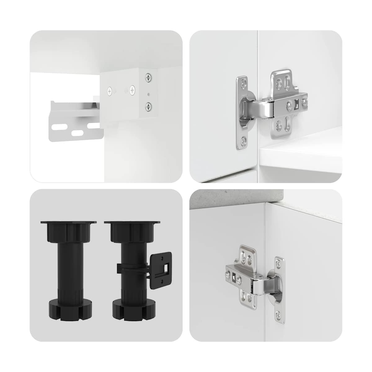 Este juego de 7 armarios de cocina, con un diseño elegante, optimiza el espacio de la cocina y ¡proporciona amplio espacio de almacenaje para tus cosas! Material estable y duradero: La madera de ingeniería es un material duradero y estable con una superficie lisa que es resistente a la humedad, la deformación y la rotura, lo que la convierte en una opción fiable para una variedad de proyectos.Amplio espacio de almacenamiento: el juego de gabinetes de cocina tiene muchos compartimentos y ofrece suficiente espacio para guardar tazones, platos, ollas y otros electrodomésticos de cocina.Patas ajustables: Los gabinetes inferiores cuentan con patas ajustables que se pueden ajustar en altura para adaptarse al diseño de su cocina.Fácil de mantener: Gracias a su superficie lisa, estos gabinetes de cocina son fáciles de limpiar con un paño húmedo y requieren menos mantenimiento. Advertencia:Para evitar que vuelque, este producto debe usarse con el dispositivo de fijación a la pared suministrado. Información útil:Los tornillos y los tacos para el interior de la pared no están incluidos. Busca y utiliza tornillos y tacos adecuados para tus paredes. Si no lo tienes claro, busca asesoramiento profesional. Lee y sigue cada paso de las instrucciones cuidadosamente.La encimera, el fregadero y el grifo no están incluidos en la entrega.