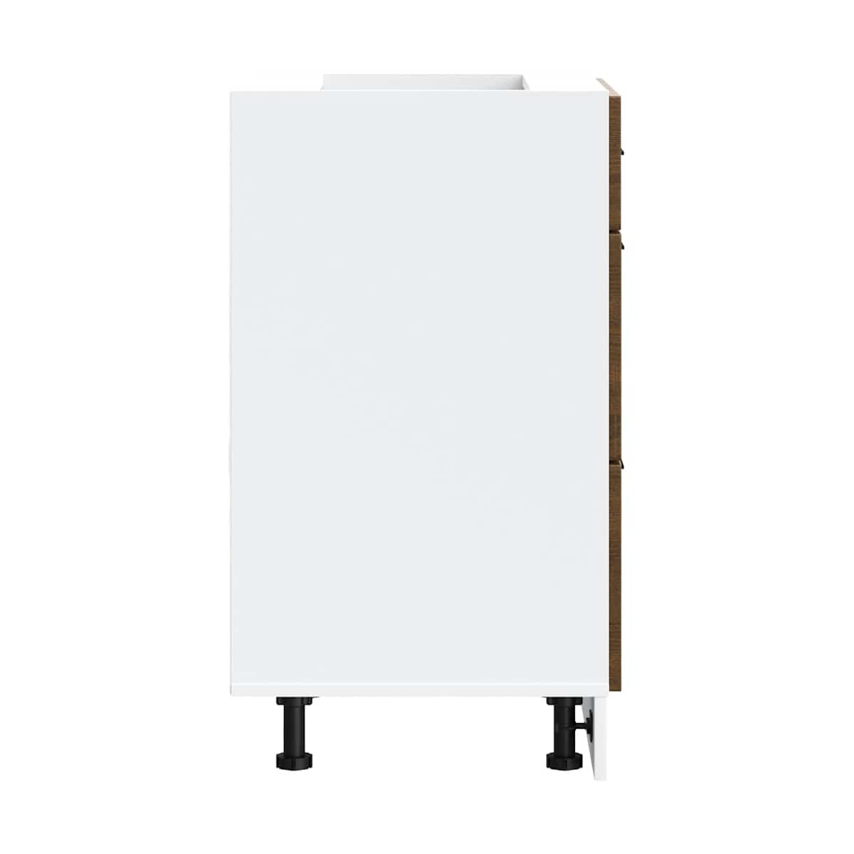 ¡Este gabinete base de cocina optimiza el espacio de su cocina y le brinda amplio espacio de almacenamiento para sus pertenencias personales! Material estable y duradero: La madera de ingeniería es un material duradero y estable con una superficie lisa que es resistente a la humedad, la deformación y la rotura, lo que la convierte en una opción fiable para una variedad de proyectos.Amplio espacio de almacenamiento: el gabinete base de la cocina ofrece suficiente espacio para guardar cuencos, platos, ollas y otros electrodomésticos de cocina.Patas ajustables: las patas de este gabinete se pueden ajustar en altura para adaptarse al diseño de su cocina.Fácil de mantener: gracias a su superficie lisa, este mueble base de cocina es fácil de limpiar con un paño húmedo y requiere menos mantenimiento. Advertencia:Para evitar el vuelco, este producto debe usarse con el dispositivo provisto para fijarlo a la pared. Información útil:Los tornillos y los tacos para el interior de la pared no están incluidos. Busca y utiliza tornillos y tacos adecuados para tus paredes. Si no lo tienes claro, busca asesoramiento profesional. Lee y sigue cada paso de las instrucciones cuidadosamente.