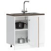 ¡Este mueble base para fregadero optimiza el espacio de tu cocina, proporcionándote amplio espacio de almacenamiento para tus pertenencias personales! Material estable y duradero: La madera de ingeniería es un material duradero y estable con una superficie lisa que es resistente a la humedad, la deformación y la rotura, lo que la convierte en una opción fiable para una variedad de proyectos.Amplio espacio de almacenamiento: el gabinete base del fregadero ofrece suficiente espacio para guardar cuencos, platos, ollas y otros electrodomésticos de cocina.Puertas prácticas: la puerta ayuda a mantener un espacio limpio y organizado al ocultar los electrodomésticos de la cocina y el desorden detrás de ellos.Patas ajustables: Las patas de este mueble base para fregadero se pueden ajustar en altura para adaptarse al diseño de su cocina.Fácil de mantener: Gracias a su superficie lisa, este mueble base para fregadero es fácil de limpiar con un paño húmedo y requiere menos mantenimiento. Advertencia:Para evitar que vuelque, este producto debe usarse con el dispositivo de fijación a la pared suministrado. Información útil:Los tornillos y los tacos para el interior de la pared no están incluidos. Busca y utiliza tornillos y tacos adecuados para tus paredes. Si no lo tienes claro, busca asesoramiento profesional. Lee y sigue cada paso de las instrucciones cuidadosamente.