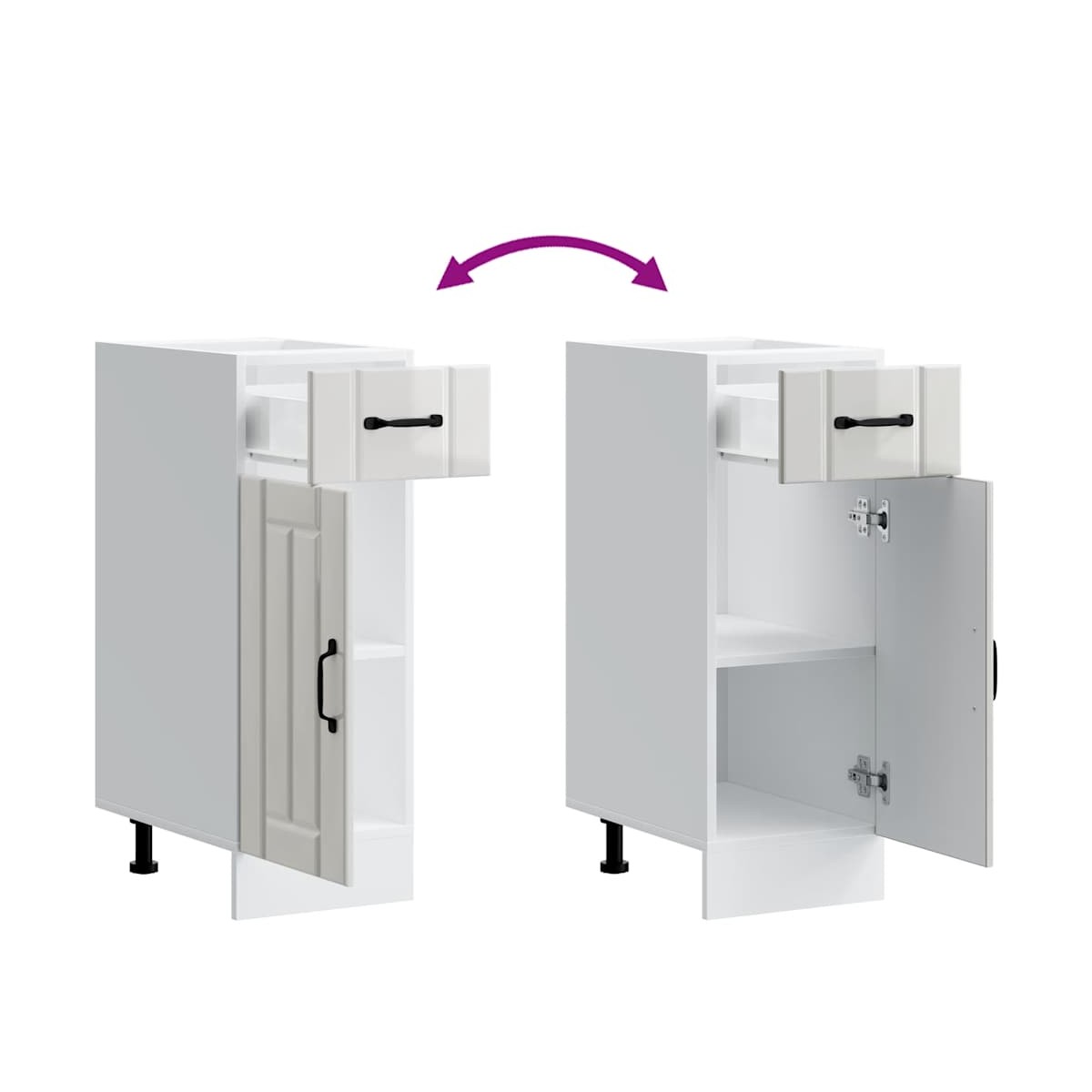 ¡Este gabinete base de cocina optimiza el espacio de su cocina y le brinda amplio espacio de almacenamiento para sus pertenencias personales! Material estable y duradero: La madera de ingeniería es un material duradero y estable con una superficie lisa que es resistente a la humedad, la deformación y la rotura, lo que la convierte en una opción fiable para una variedad de proyectos.Amplio espacio de almacenamiento: el gabinete base del fregadero ofrece suficiente espacio para guardar cuencos, platos, ollas y otros electrodomésticos de cocina.Puertas prácticas: la puerta ayuda a mantener un espacio limpio y organizado al ocultar los electrodomésticos de la cocina y el desorden detrás de ellos.Patas ajustables: las patas de este gabinete se pueden ajustar en altura para adaptarse al diseño de su cocina.Fácil de mantener: gracias a su superficie lisa, este mueble base de cocina es fácil de limpiar con un paño húmedo y requiere menos mantenimiento. Advertencia:Para evitar que vuelque, este producto debe usarse con el dispositivo de fijación a la pared suministrado. Información útil:Los tornillos y los tacos para el interior de la pared no están incluidos. Busca y utiliza tornillos y tacos adecuados para tus paredes. Si no lo tienes claro, busca asesoramiento profesional. Lee y sigue cada paso de las instrucciones cuidadosamente.