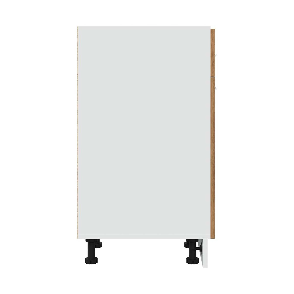 Este armario inferior optimiza el espacio de tu cocina, ¡y proporciona amplio espacio de almacenaje para tus cosas! Material duradero: La madera de ingeniería tiene una calidad excepcional, con una superficie lisa y también cuenta con fuerza, estabilidad y resistencia a la humedad. Hecho de madera contrachapada, el armario de cocina es fácil de limpiar.Amplio espacio de almacenaje: El armario tiene 1 cajón y 2 compartimentos, que aportan espacio suficiente para guardar cuencos, platos, ollas y otros electrodomésticos de la cocina.Puerta práctica: Mantén ordenada la casa al esconder los pequeños objetos esenciales detrás de la puerta de este mueble de cocina. Advertencia:Para evitar que vuelque, este producto debe usarse con el dispositivo de fijación a la pared suministrado.