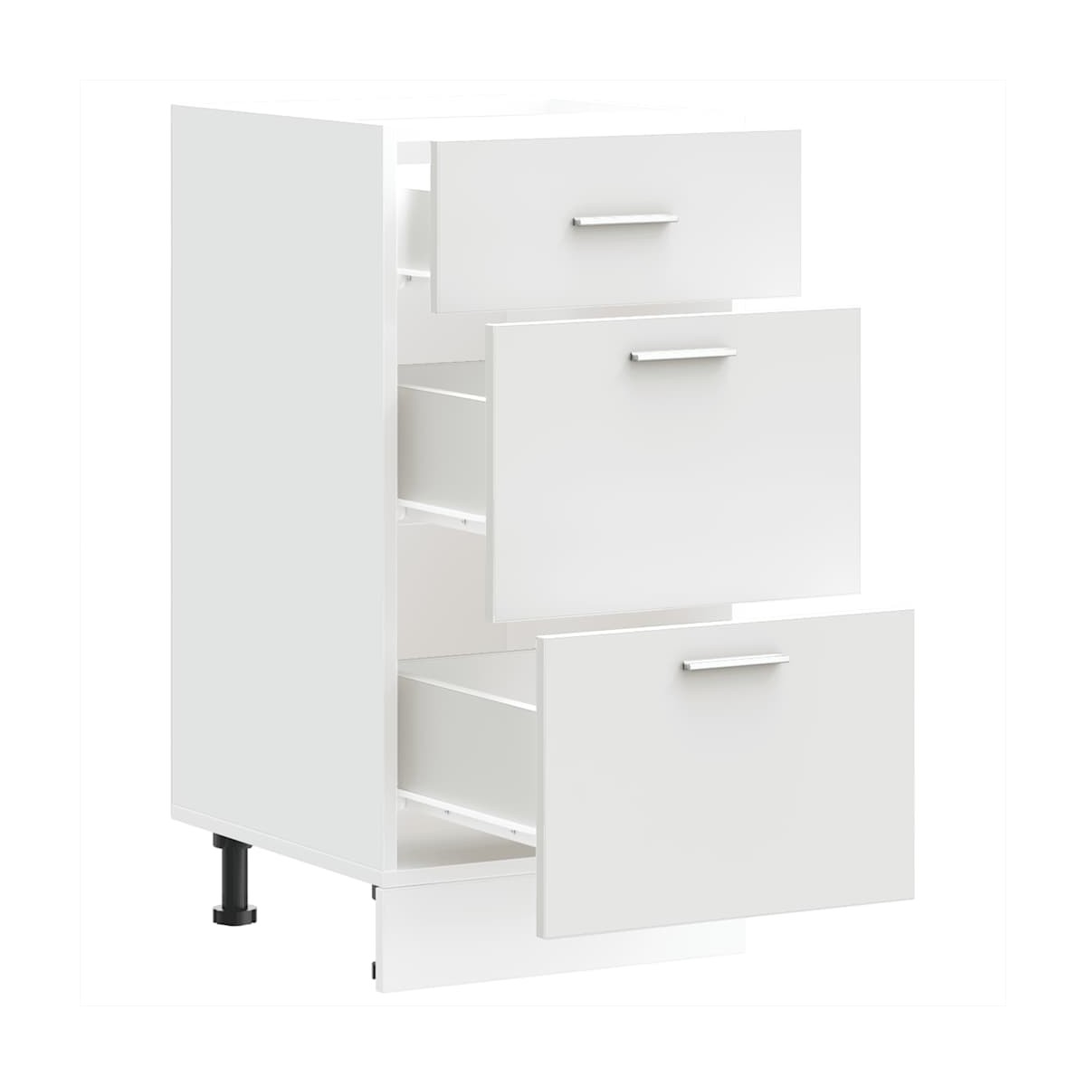 Este armario inferior de cocina optimiza el espacio de tu cocina, ¡y proporciona amplio espacio de almacenaje para tus cosas! Material estable y duradero: La madera de ingeniería es un material duradero y estable con una superficie lisa que es resistente a la humedad, la deformación y la rotura, lo que la convierte en una opción fiable para una variedad de proyectos.Almacenamiento adicional: El gabinete de cocina ofrece espacio suficiente para guardar cuencos, platos, ollas y otros electrodomésticos de cocina.Patas ajustables: el armario de cocina cuenta con patas ajustables que se pueden ajustar en altura para adaptarse al diseño de su cocina.Fácil de mantener: Gracias a su superficie lisa, se limpia fácilmente con un paño húmedo y requiere menos mantenimiento. Advertencia:Para evitar que vuelque, este producto debe usarse con el dispositivo de fijación a la pared suministrado.