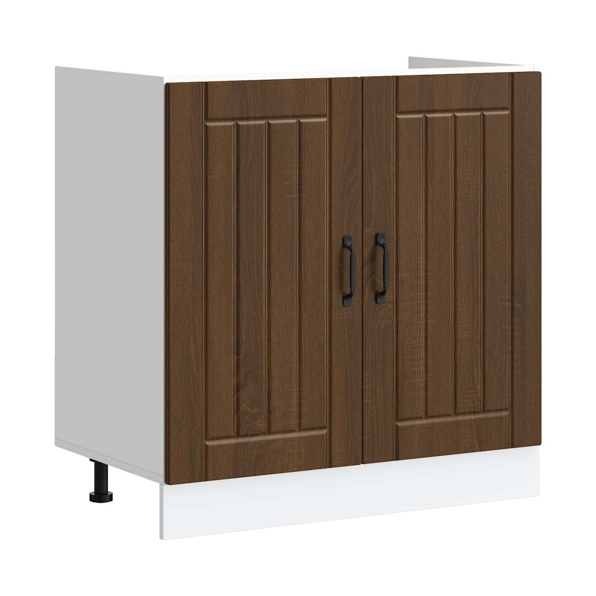 ¡Este mueble base para fregadero optimiza el espacio de tu cocina, proporcionándote amplio espacio de almacenamiento para tus pertenencias personales! Material estable y duradero: La madera de ingeniería es un material duradero y estable con una superficie lisa que es resistente a la humedad, la deformación y la rotura, lo que la convierte en una opción fiable para una variedad de proyectos.Amplio espacio de almacenamiento: el gabinete base de la cocina ofrece suficiente espacio para guardar cuencos, platos, ollas y otros electrodomésticos de cocina.Puertas prácticas: la puerta ayuda a mantener un espacio limpio y organizado al ocultar los electrodomésticos de la cocina y el desorden detrás de ellos.Patas ajustables: Las patas de este gabinete base para fregadero de cocina se pueden ajustar en altura para adaptarse al diseño de su cocina.Fácil de mantener: gracias a su superficie lisa, esta base de fregadero de cocina es fácil de limpiar con un paño húmedo y requiere menos mantenimiento. Advertencia:Para evitar que vuelque, este producto debe usarse con el dispositivo de fijación a la pared suministrado. Información útil:Los tornillos y los tacos para el interior de la pared no están incluidos. Busca y utiliza tornillos y tacos adecuados para tus paredes. Si no lo tienes claro, busca asesoramiento profesional. Lee y sigue cada paso de las instrucciones cuidadosamente.