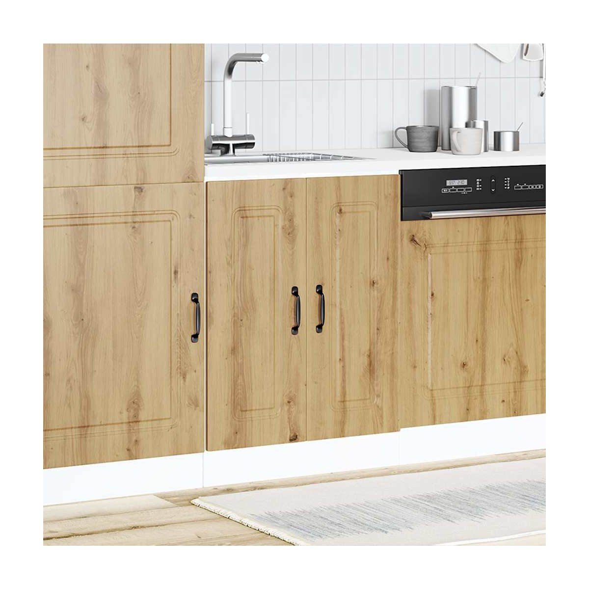¡Este mueble base para fregadero optimiza el espacio de tu cocina, proporcionándote amplio espacio de almacenamiento para tus pertenencias personales!Material estable y duradero: La madera de ingeniería es un material duradero y estable con una superficie lisa que es resistente a la humedad, la deformación y la rotura, lo que la convierte en una opción fiable para una variedad de proyectos.Amplio espacio de almacenamiento: el gabinete base del fregadero ofrece suficiente espacio para guardar cuencos, platos, ollas y otros electrodomésticos de cocina.Puertas prácticas: la puerta ayuda a mantener un espacio limpio y organizado al ocultar los electrodomésticos de la cocina y el desorden detrás de ellos.Patas ajustables: Las patas de este mueble base para fregadero se pueden ajustar en altura para adaptarse al diseño de su cocina.Fácil de mantener: Gracias a su superficie lisa, este mueble base para fregadero es fácil de limpiar con un paño húmedo y requiere menos mantenimiento. Advertencia:Para evitar que vuelque, este producto debe usarse con el dispositivo de fijación a la pared suministrado. Información útil:Los tornillos y los tacos para el interior de la pared no están incluidos. Busca y utiliza tornillos y tacos adecuados para tus paredes. Si no lo tienes claro, busca asesoramiento profesional. Lee y sigue cada paso de las instrucciones cuidadosamente.