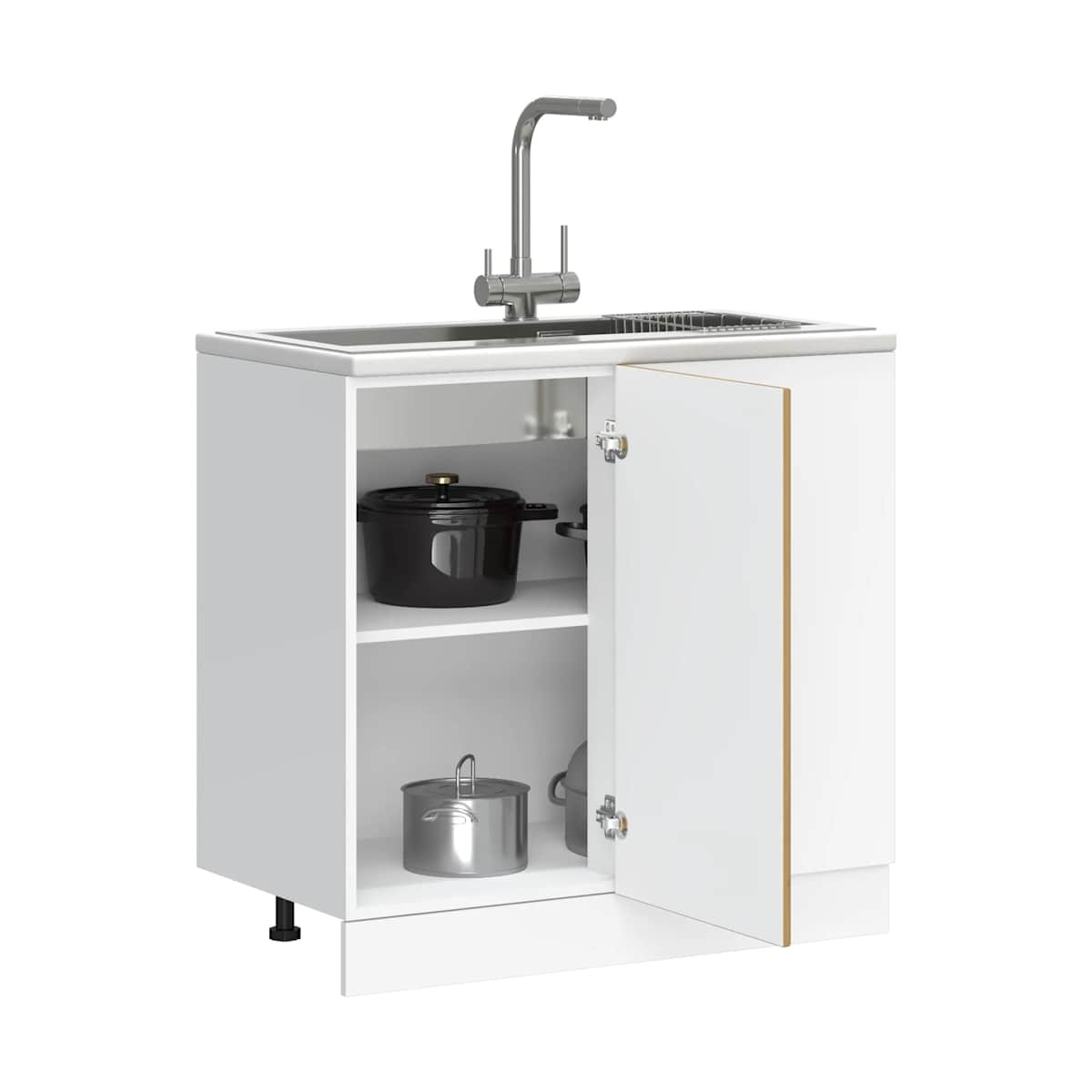 ¡Este mueble base para fregadero optimiza el espacio de tu cocina, proporcionándote amplio espacio de almacenamiento para tus pertenencias personales! Material estable y duradero: La madera de ingeniería es un material duradero y estable con una superficie lisa que es resistente a la humedad, la deformación y la rotura, lo que la convierte en una opción fiable para una variedad de proyectos.Amplio espacio de almacenamiento: el gabinete base del fregadero ofrece suficiente espacio para guardar cuencos, platos, ollas y otros electrodomésticos de cocina.Puertas prácticas: la puerta ayuda a mantener un espacio limpio y organizado al ocultar los electrodomésticos de la cocina y el desorden detrás de ellos.Patas ajustables: Las patas de este mueble base para fregadero se pueden ajustar en altura para adaptarse al diseño de su cocina.Fácil de mantener: Gracias a su superficie lisa, este mueble base para fregadero es fácil de limpiar con un paño húmedo y requiere menos mantenimiento. Advertencia:Para evitar que vuelque, este producto debe usarse con el dispositivo de fijación a la pared suministrado. Información útil:Los tornillos y los tacos para el interior de la pared no están incluidos. Busca y utiliza tornillos y tacos adecuados para tus paredes. Si no lo tienes claro, busca asesoramiento profesional. Lee y sigue cada paso de las instrucciones cuidadosamente.