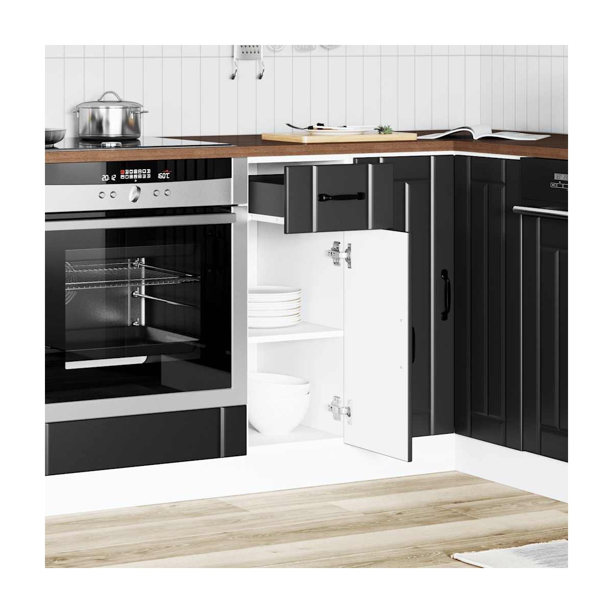¡Este gabinete base de cocina optimiza el espacio de su cocina y le brinda amplio espacio de almacenamiento para sus pertenencias personales! Material estable y duradero: La madera de ingeniería es un material duradero y estable con una superficie lisa que es resistente a la humedad, la deformación y la rotura, lo que la convierte en una opción fiable para una variedad de proyectos.Amplio espacio de almacenamiento: el gabinete base del fregadero ofrece suficiente espacio para guardar cuencos, platos, ollas y otros electrodomésticos de cocina.Puertas prácticas: la puerta ayuda a mantener un espacio limpio y organizado al ocultar los electrodomésticos de la cocina y el desorden detrás de ellos.Patas ajustables: las patas de este gabinete se pueden ajustar en altura para adaptarse al diseño de su cocina.Fácil de mantener: gracias a su superficie lisa, este mueble base de cocina es fácil de limpiar con un paño húmedo y requiere menos mantenimiento. Advertencia:Para evitar que vuelque, este producto debe usarse con el dispositivo de fijación a la pared suministrado. Información útil:Los tornillos y los tacos para el interior de la pared no están incluidos. Busca y utiliza tornillos y tacos adecuados para tus paredes. Si no lo tienes claro, busca asesoramiento profesional. Lee y sigue cada paso de las instrucciones cuidadosamente.