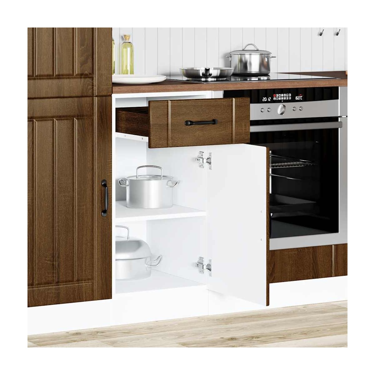 ¡Este gabinete base de cocina optimiza el espacio de su cocina y le brinda amplio espacio de almacenamiento para sus pertenencias personales! Material estable y duradero: La madera de ingeniería es un material duradero y estable con una superficie lisa que es resistente a la humedad, la deformación y la rotura, lo que la convierte en una opción fiable para una variedad de proyectos.Amplio espacio de almacenamiento: el gabinete base del fregadero ofrece suficiente espacio para guardar cuencos, platos, ollas y otros electrodomésticos de cocina.Puertas prácticas: la puerta ayuda a mantener un espacio limpio y organizado al ocultar los electrodomésticos de la cocina y el desorden detrás de ellos.Patas ajustables: las patas de este gabinete se pueden ajustar en altura para adaptarse al diseño de su cocina.Fácil de mantener: gracias a su superficie lisa, este mueble base de cocina es fácil de limpiar con un paño húmedo y requiere menos mantenimiento. Advertencia:Para evitar que vuelque, este producto debe usarse con el dispositivo de fijación a la pared suministrado. Información útil:Los tornillos y los tacos para el interior de la pared no están incluidos. Busca y utiliza tornillos y tacos adecuados para tus paredes. Si no lo tienes claro, busca asesoramiento profesional. Lee y sigue cada paso de las instrucciones cuidadosamente.