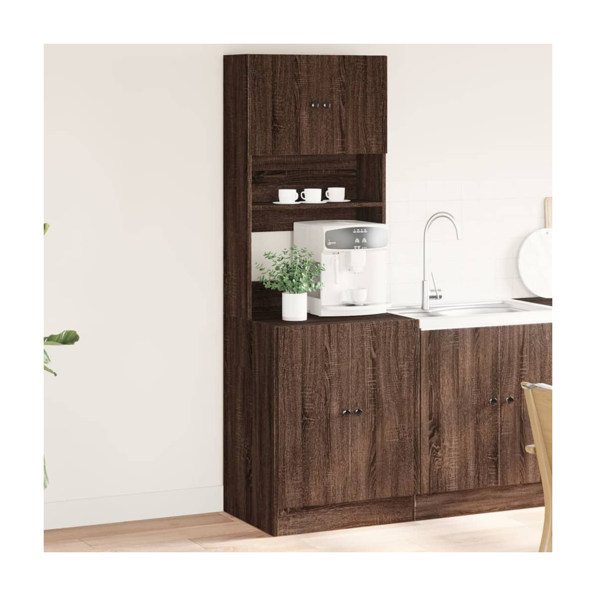 Si deseas mantener organizados los utensilios de cocina, este armario de cocina será una opción perfecta para ti. Material duradero: La madera de ingeniería tiene una calidad excepcional, con una superficie lisa y también cuenta con fuerza, estabilidad y resistencia a la humedad.Amplio espacio de almacenamiento: El aparador de cocina proporciona un amplio espacio de almacenamiento para almacenar tazones, platos, ollas y otros electrodomésticos de cocina.Diseño práctico: Este mueble de cocina está equipado con puertas y cajones, que pueden ayudarte a almacenar mejor los utensilios de cocina a la vez que garantizan su limpieza.Amplios usos: El armario de cocina puede utilizarse ampliamente en restaurantes, hoteles, lugares de trabajo y hogares.Advertencia:Para evitar que vuelque, este producto debe usarse con el dispositivo de fijación a la pared suministrado. Información útil:Los tornillos y los tacos para el interior de la pared no están incluidos. Te recomendamos buscar y utilizar tornillos y tacos adecuados específicamente para tus paredes. Si no estás seguro, puedes consultar con un profesional. Lee y sigue cada paso de las instrucciones.