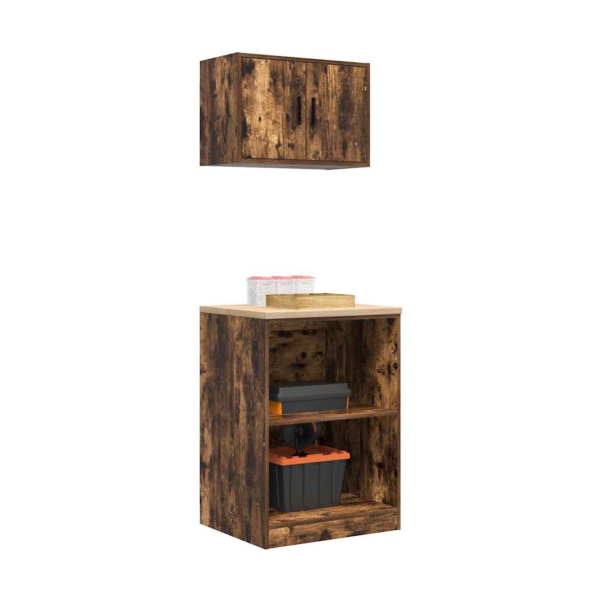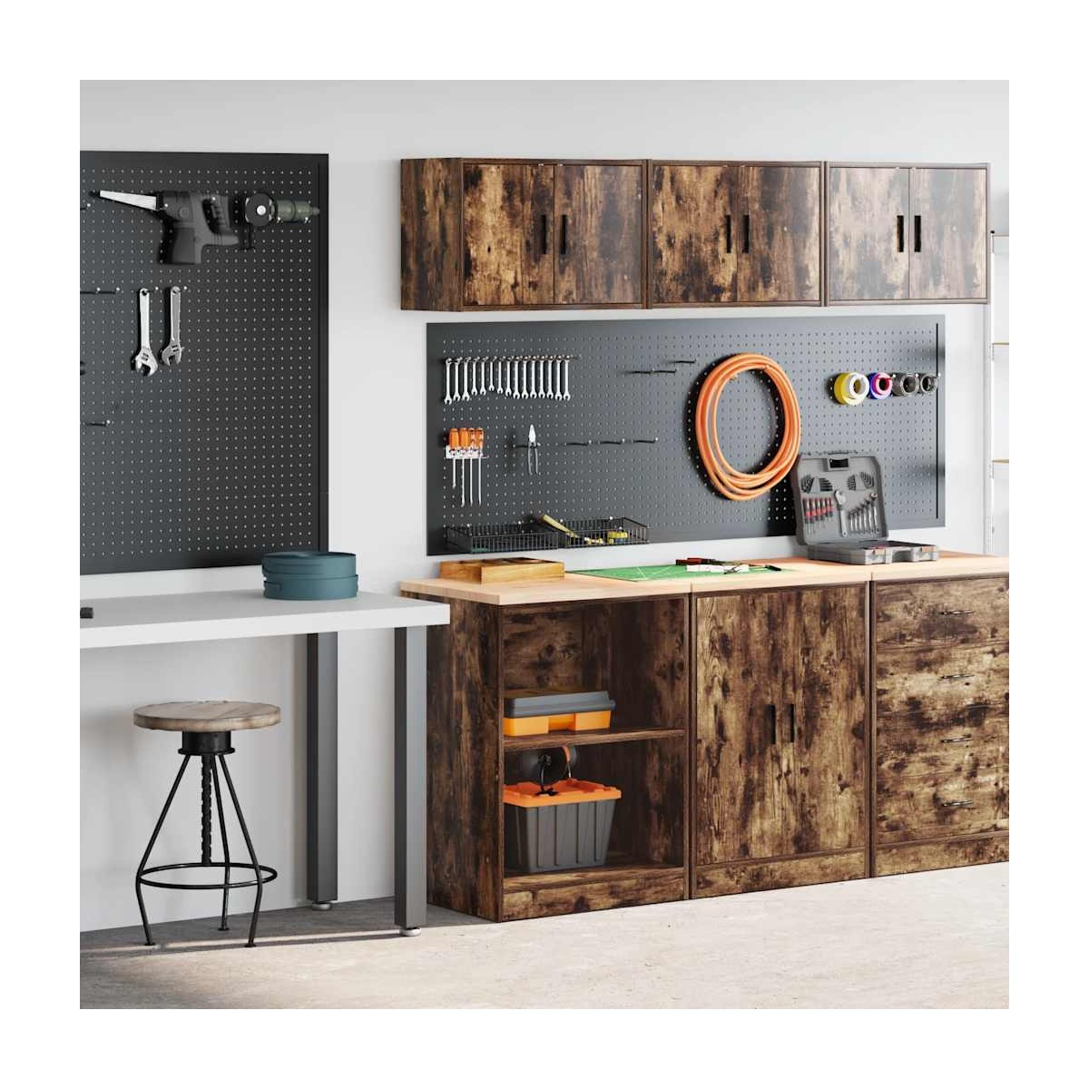 Estos armarios de garaje son una excelente opción para organizar todas sus herramientas y materiales de bricolaje en el garaje, trastero o taller. Durable y de larga duración: este gabinete de garaje está hecho de madera de pino duradera y madera de ingeniería, lo que garantiza estabilidad y robustez para un uso duradero.Amplio espacio de almacenamiento: este gabinete de herramientas le permite mantener sus herramientas de uso frecuente a su alcance, lo que hace que sea conveniente acceder a todo lo que necesita para su próximo proyecto.Superficie de trabajo versátil: la encimera de madera proporciona una superficie resistente para diversas tareas, como reparaciones, montajes o proyectos de bricolaje.Fácil de mantener: Gracias a su superficie lisa, el armario es fácil de limpiar con un paño húmedo y requiere menos mantenimiento.Amplias aplicaciones: este gabinete de almacenamiento de garaje proporciona mucho espacio seguro, lo que lo hace ideal para organizar artículos en diversos entornos, como garajes, oficinas, lavaderos, despensas, sótanos o talleres.Opciones de montaje flexibles: Las puertas del compartimiento se pueden instalar a la izquierda o a la derecha según tu conveniencia y hábitos personales. Información útil:Los tornillos y los tacos para el interior de la pared no están incluidos. Recomendamos encontrar y utilizar tornillos y tacos adecuados específicamente para las paredes. Si no estás seguro, puedes consultar con un profesional. Lee y sigue cada paso de las instrucciones. Advertencia:Para evitar que vuelque, este producto debe usarse con el dispositivo de fijación a la pared suministrado.