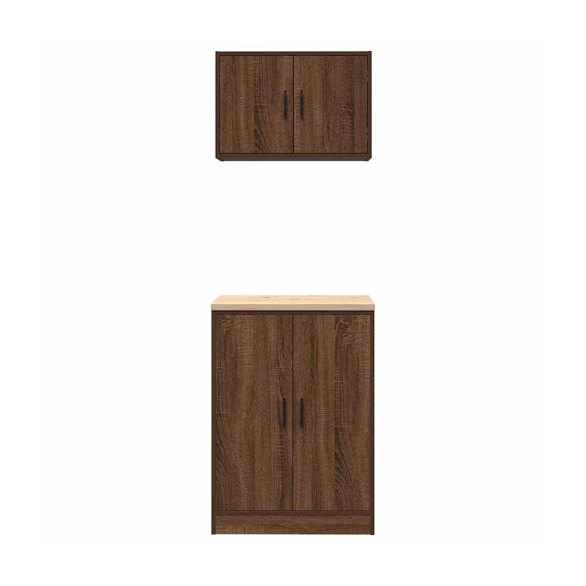 Estos armarios de garaje son una excelente opción para organizar todas sus herramientas y materiales de bricolaje en el garaje, trastero o taller. Durable y de larga duración: este gabinete de garaje está hecho de madera de pino duradera y madera de ingeniería, lo que garantiza estabilidad y robustez para un uso duradero.Amplio espacio de almacenamiento: este gabinete de herramientas le permite mantener sus herramientas de uso frecuente a su alcance, lo que hace que sea conveniente acceder a todo lo que necesita para su próximo proyecto.Superficie de trabajo versátil: la encimera de madera proporciona una superficie resistente para diversas tareas, como reparaciones, montajes o proyectos de bricolaje.Fácil de mantener: Gracias a su superficie lisa, el armario es fácil de limpiar con un paño húmedo y requiere menos mantenimiento.Amplias aplicaciones: este gabinete de almacenamiento de garaje proporciona mucho espacio seguro, lo que lo hace ideal para organizar artículos en diversos entornos, como garajes, oficinas, lavaderos, despensas, sótanos o talleres.Opciones de montaje flexibles: Las puertas del compartimiento se pueden instalar a la izquierda o a la derecha según tu conveniencia y hábitos personales. Información útil:Los tornillos y los tacos para el interior de la pared no están incluidos. Recomendamos encontrar y utilizar tornillos y tacos adecuados específicamente para las paredes. Si no estás seguro, puedes consultar con un profesional. Lee y sigue cada paso de las instrucciones. Advertencia:Para evitar que vuelque, este producto debe usarse con el dispositivo de fijación a la pared suministrado.