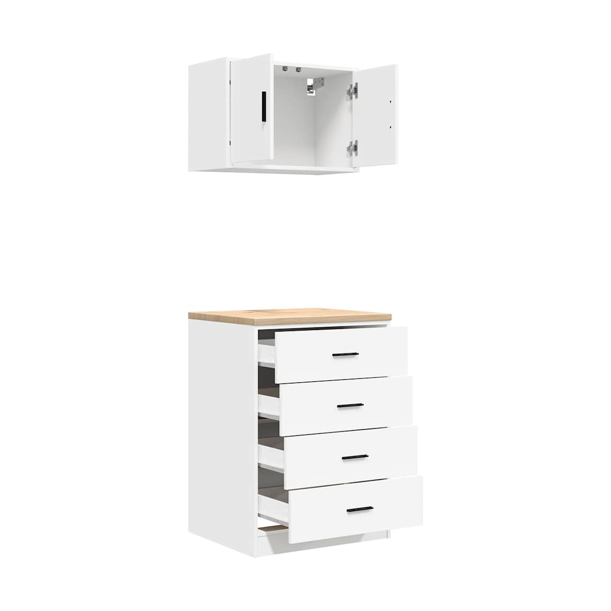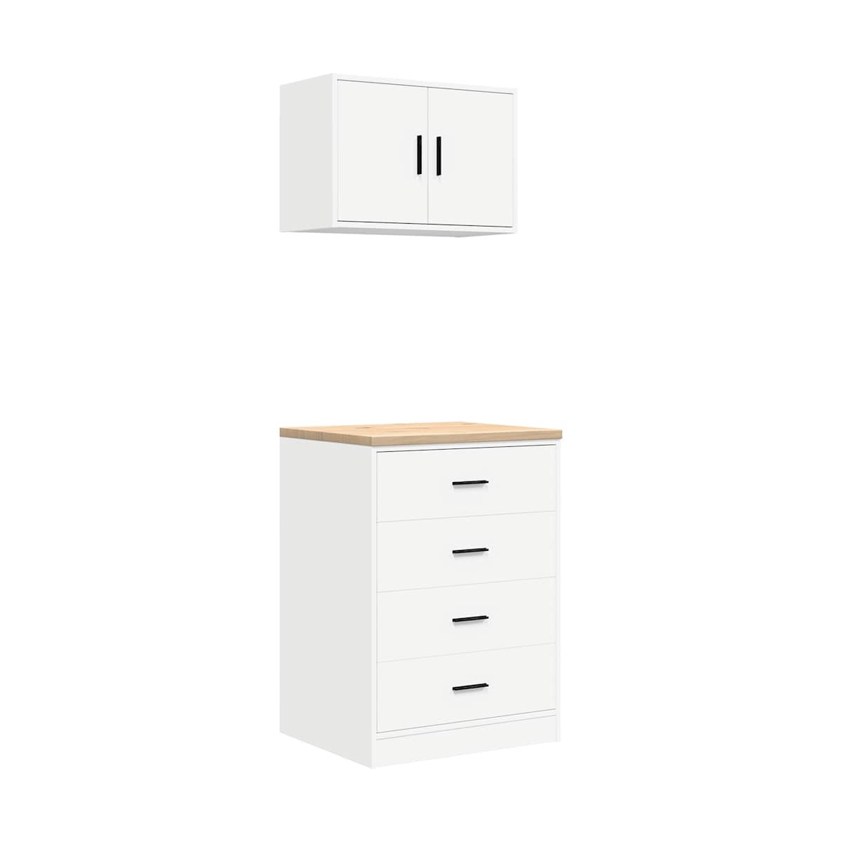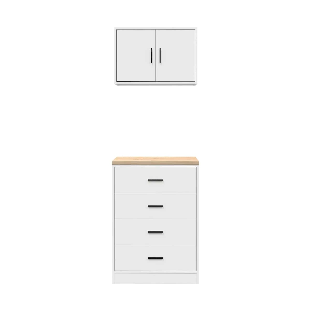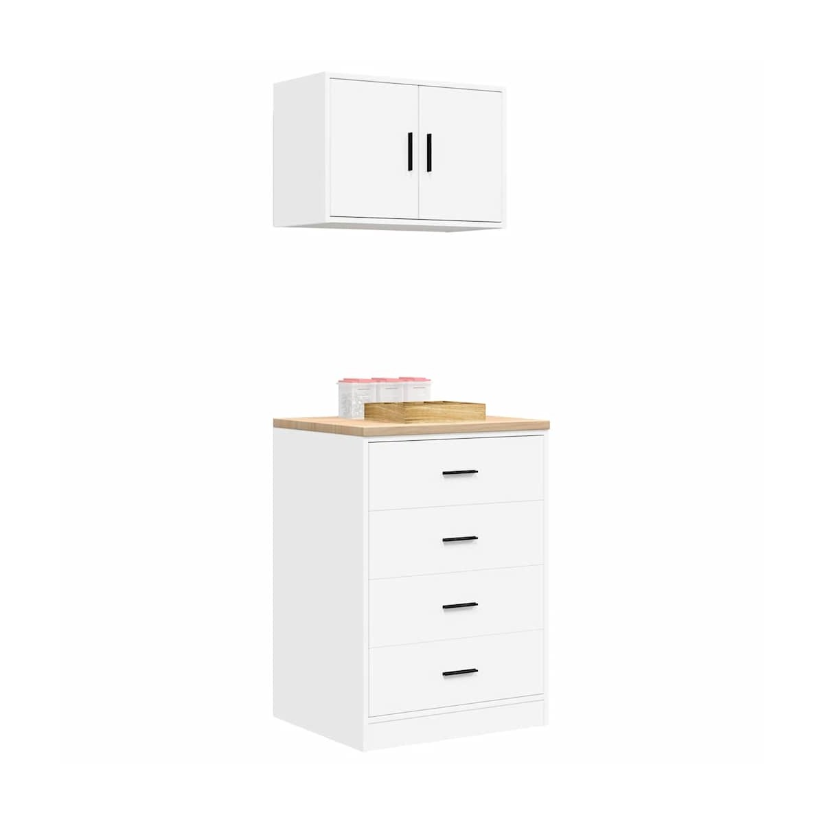Estos armarios de garaje son una excelente opción para organizar todas sus herramientas y materiales de bricolaje en el garaje, trastero o taller. Durable y de larga duración: este gabinete de garaje está hecho de madera de pino duradera y madera de ingeniería, lo que garantiza estabilidad y robustez para un uso duradero.Amplio espacio de almacenamiento: este gabinete de herramientas le permite mantener sus herramientas de uso frecuente a su alcance, lo que hace que sea conveniente acceder a todo lo que necesita para su próximo proyecto.Superficie de trabajo versátil: la encimera de madera proporciona una superficie resistente para diversas tareas, como reparaciones, montajes o proyectos de bricolaje.Fácil de mantener: Gracias a su superficie lisa, el armario es fácil de limpiar con un paño húmedo y requiere menos mantenimiento.Amplias aplicaciones: este gabinete de almacenamiento de garaje proporciona mucho espacio seguro, lo que lo hace ideal para organizar artículos en diversos entornos, como garajes, oficinas, lavaderos, despensas, sótanos o talleres.Opciones de montaje flexibles: Las puertas del compartimiento se pueden instalar a la izquierda o a la derecha según tu conveniencia y hábitos personales. Información útil:Los tornillos y los tacos para el interior de la pared no están incluidos. Recomendamos encontrar y utilizar tornillos y tacos adecuados específicamente para las paredes. Si no estás seguro, puedes consultar con un profesional. Lee y sigue cada paso de las instrucciones. Advertencia:Para evitar que vuelque, este producto debe usarse con el dispositivo de fijación a la pared suministrado.