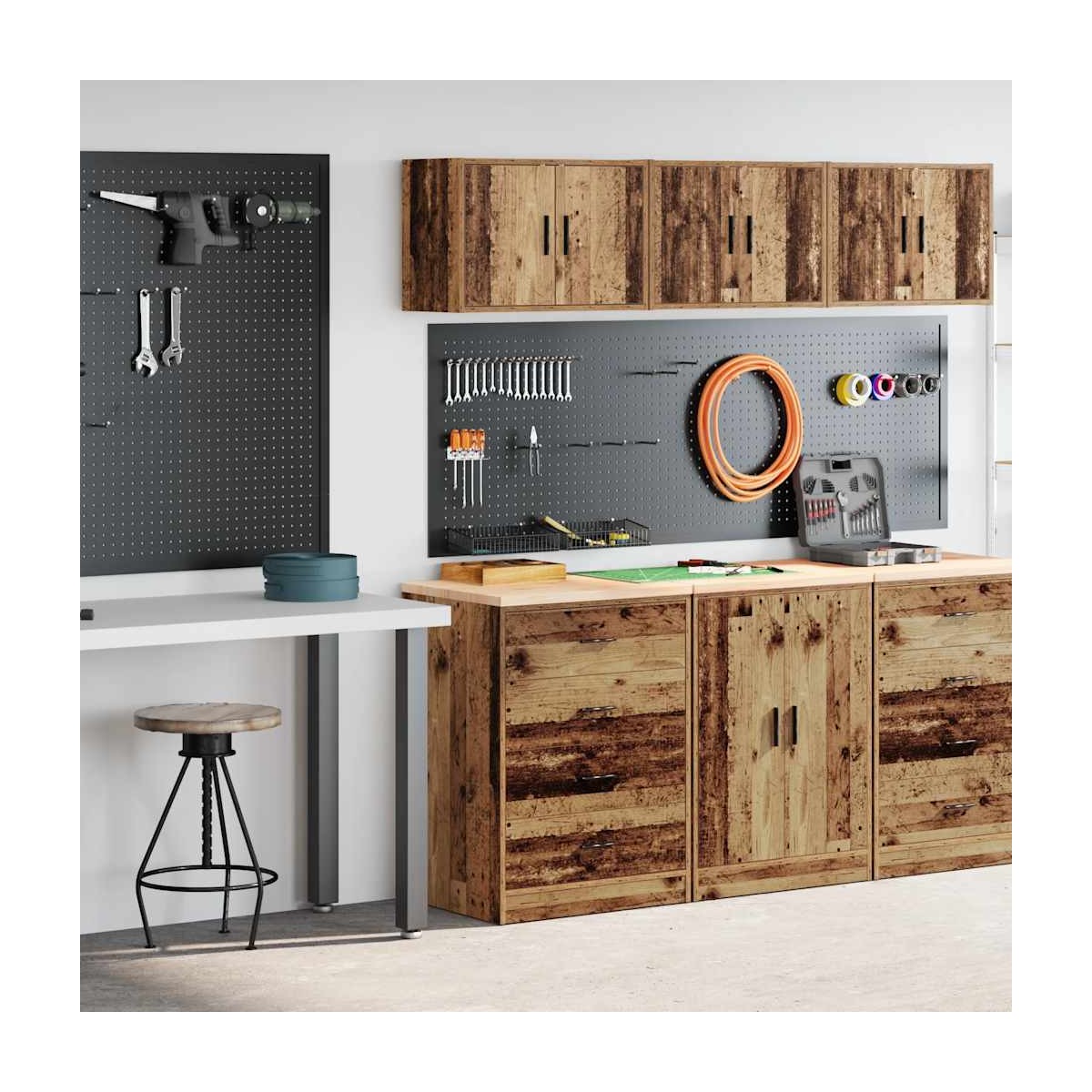 Estos armarios de garaje son una excelente opción para organizar todas sus herramientas y materiales de bricolaje en el garaje, trastero o taller. Durable y de larga duración: este gabinete de garaje está hecho de madera de pino duradera y madera de ingeniería, lo que garantiza estabilidad y robustez para un uso duradero.Amplio espacio de almacenamiento: este gabinete de herramientas le permite mantener sus herramientas de uso frecuente a su alcance, lo que hace que sea conveniente acceder a todo lo que necesita para su próximo proyecto.Superficie de trabajo versátil: la encimera de madera proporciona una superficie resistente para diversas tareas, como reparaciones, montajes o proyectos de bricolaje.Fácil de mantener: Gracias a su superficie lisa, el armario es fácil de limpiar con un paño húmedo y requiere menos mantenimiento.Amplias aplicaciones: este gabinete de almacenamiento de garaje proporciona mucho espacio seguro, lo que lo hace ideal para organizar artículos en diversos entornos, como garajes, oficinas, lavaderos, despensas, sótanos o talleres.Opciones de montaje flexibles: Las puertas del compartimiento se pueden instalar a la izquierda o a la derecha según tu conveniencia y hábitos personales. Información útil:Los tornillos y los tacos para el interior de la pared no están incluidos. Recomendamos encontrar y utilizar tornillos y tacos adecuados específicamente para las paredes. Si no estás seguro, puedes consultar con un profesional. Lee y sigue cada paso de las instrucciones. Advertencia:Para evitar que vuelque, este producto debe usarse con el dispositivo de fijación a la pared suministrado.