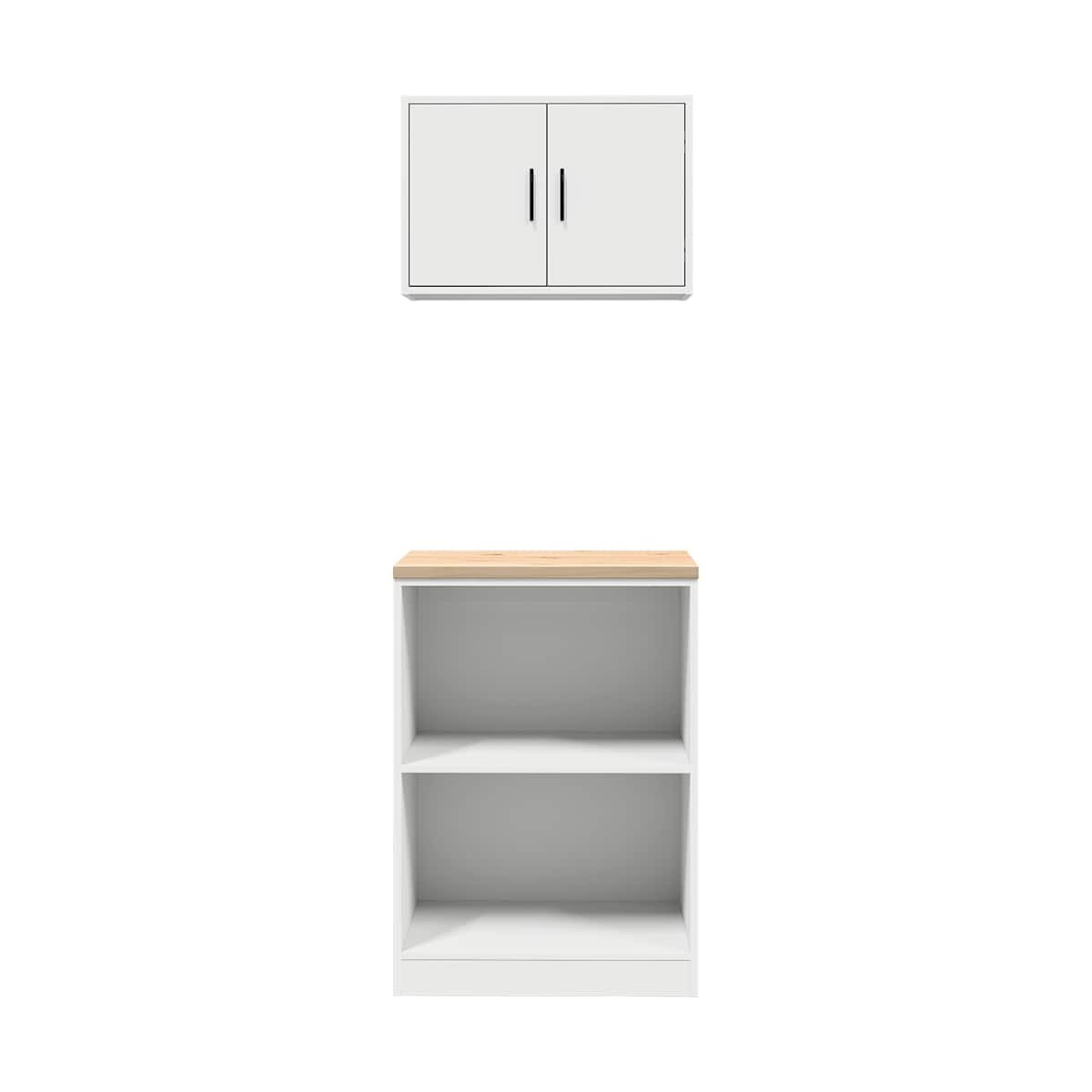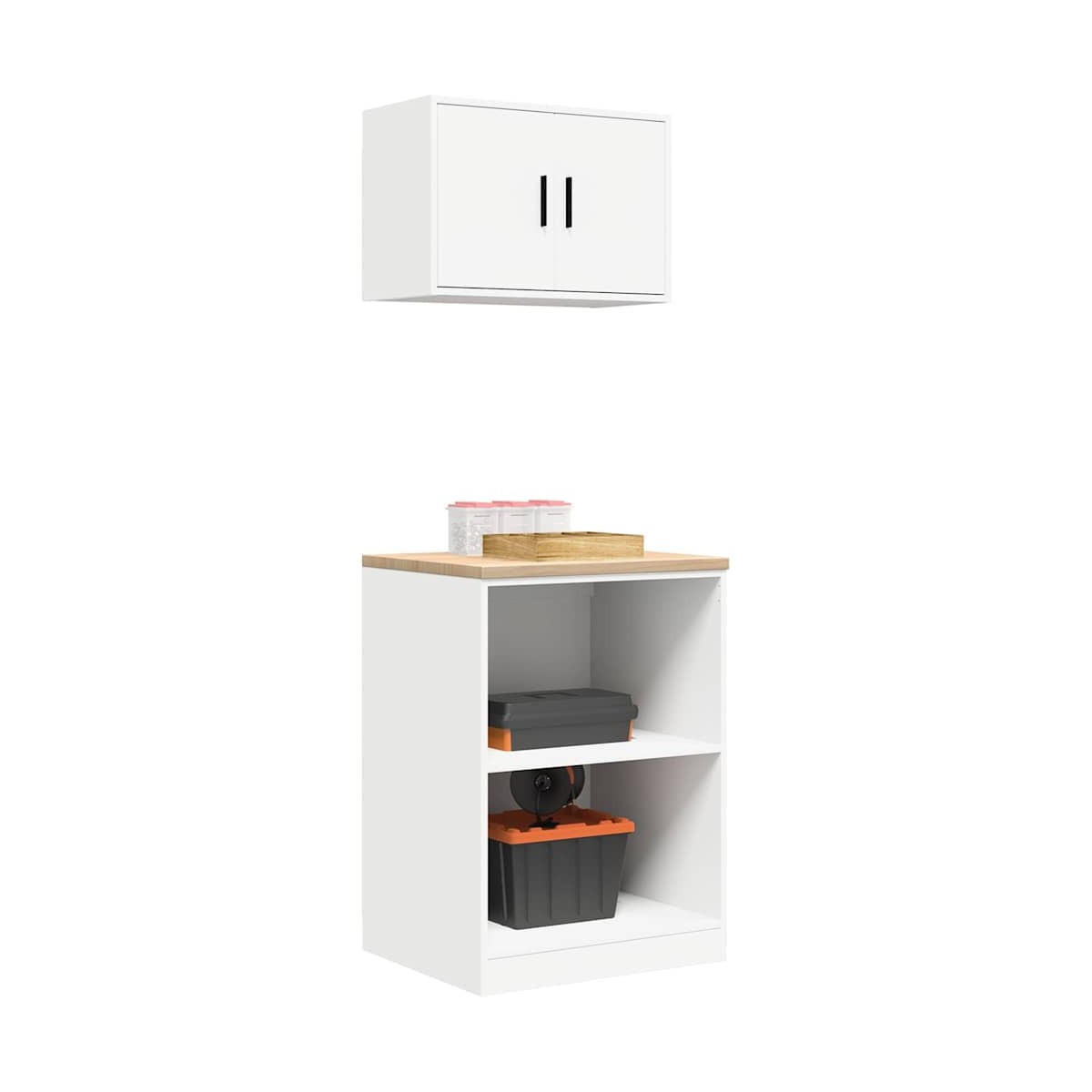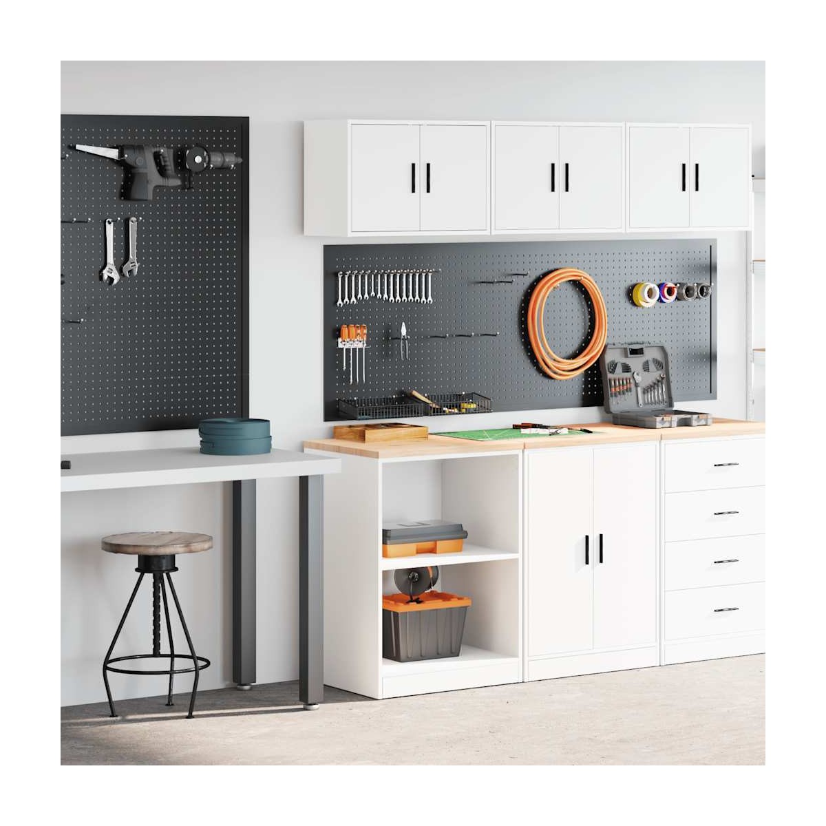 Estos armarios de garaje son una excelente opción para organizar todas sus herramientas y materiales de bricolaje en el garaje, trastero o taller. Durable y de larga duración: este gabinete de garaje está hecho de madera de pino duradera y madera de ingeniería, lo que garantiza estabilidad y robustez para un uso duradero.Amplio espacio de almacenamiento: este gabinete de herramientas le permite mantener sus herramientas de uso frecuente a su alcance, lo que hace que sea conveniente acceder a todo lo que necesita para su próximo proyecto.Superficie de trabajo versátil: la encimera de madera proporciona una superficie resistente para diversas tareas, como reparaciones, montajes o proyectos de bricolaje.Fácil de mantener: Gracias a su superficie lisa, el armario es fácil de limpiar con un paño húmedo y requiere menos mantenimiento.Amplias aplicaciones: este gabinete de almacenamiento de garaje proporciona mucho espacio seguro, lo que lo hace ideal para organizar artículos en diversos entornos, como garajes, oficinas, lavaderos, despensas, sótanos o talleres.Opciones de montaje flexibles: Las puertas del compartimiento se pueden instalar a la izquierda o a la derecha según tu conveniencia y hábitos personales. Información útil:Los tornillos y los tacos para el interior de la pared no están incluidos. Recomendamos encontrar y utilizar tornillos y tacos adecuados específicamente para las paredes. Si no estás seguro, puedes consultar con un profesional. Lee y sigue cada paso de las instrucciones. Advertencia:Para evitar que vuelque, este producto debe usarse con el dispositivo de fijación a la pared suministrado.