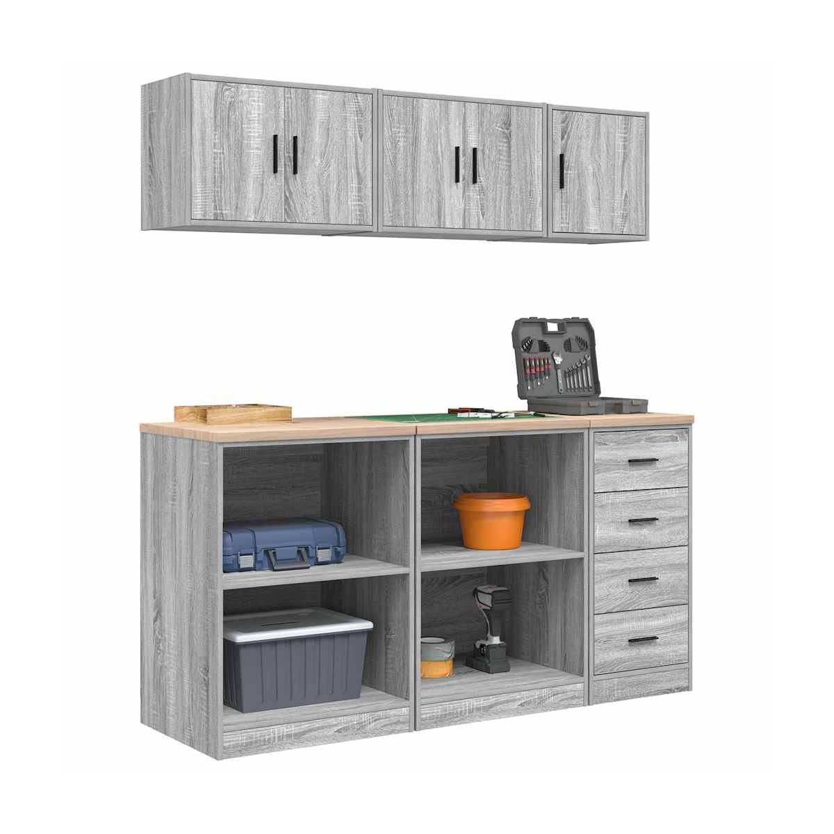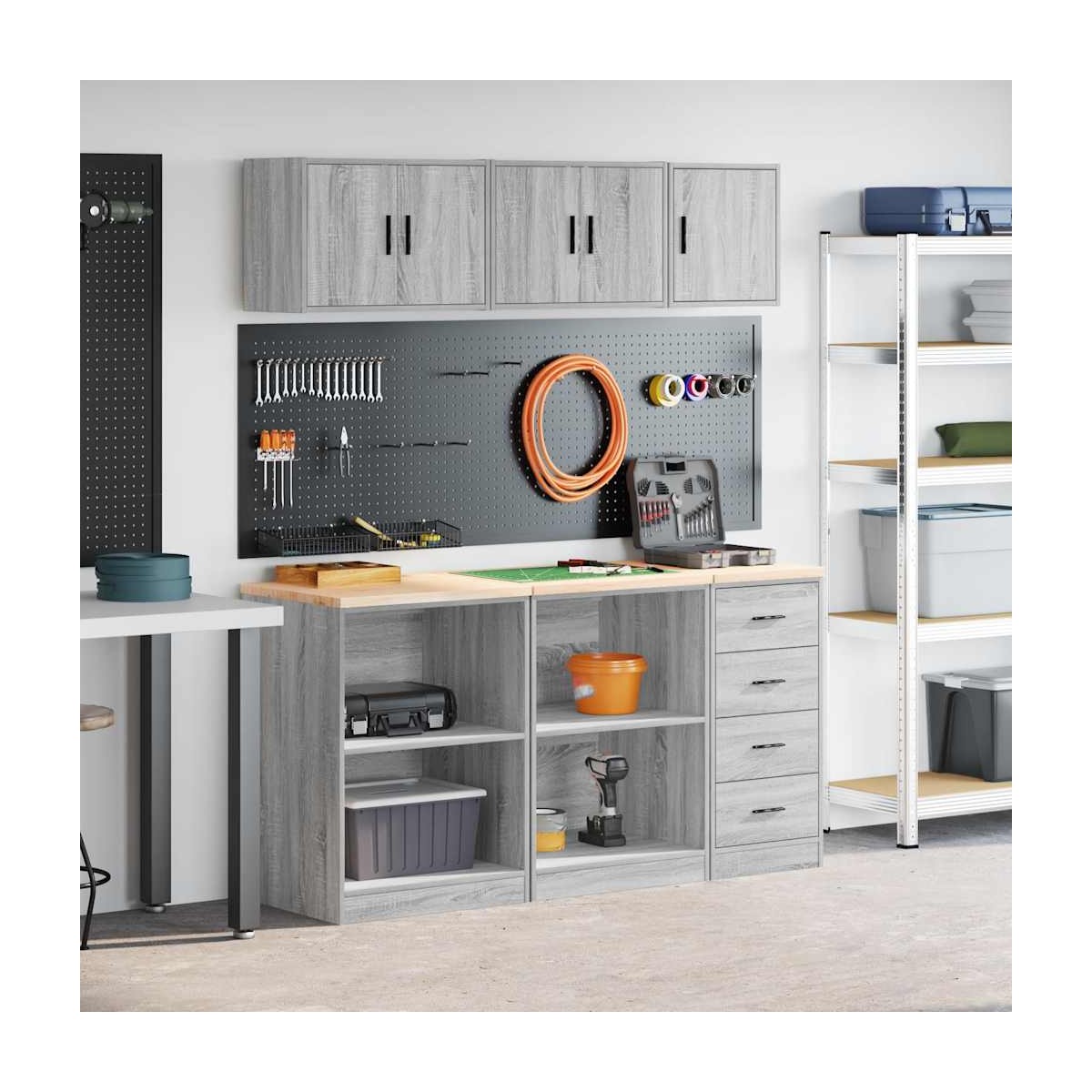 Estos armarios de garaje son una excelente opción para organizar todas sus herramientas y materiales de bricolaje en el garaje, trastero o taller. Durable y de larga duración: este gabinete de garaje está hecho de madera de pino duradera y madera de ingeniería, lo que garantiza estabilidad y robustez para un uso duradero.Amplio espacio de almacenamiento: este gabinete de herramientas le permite mantener sus herramientas de uso frecuente a su alcance, lo que hace que sea conveniente acceder a todo lo que necesita para su próximo proyecto.Superficie de trabajo versátil: la encimera de madera proporciona una superficie resistente para diversas tareas, como reparaciones, montajes o proyectos de bricolaje.Fácil de mantener: Gracias a su superficie lisa, el armario es fácil de limpiar con un paño húmedo y requiere menos mantenimiento.Amplias aplicaciones: este gabinete de almacenamiento de garaje proporciona mucho espacio seguro, lo que lo hace ideal para organizar artículos en diversos entornos, como garajes, oficinas, lavaderos, despensas, sótanos o talleres.Opciones de montaje flexibles: Las puertas del compartimiento se pueden instalar a la izquierda o a la derecha según tu conveniencia y hábitos personales. Información útil:Los tornillos y los tacos para el interior de la pared no están incluidos. Recomendamos encontrar y utilizar tornillos y tacos adecuados específicamente para las paredes. Si no estás seguro, puedes consultar con un profesional. Lee y sigue cada paso de las instrucciones. Advertencia:Para evitar que vuelque, este producto debe usarse con el dispositivo de fijación a la pared suministrado.