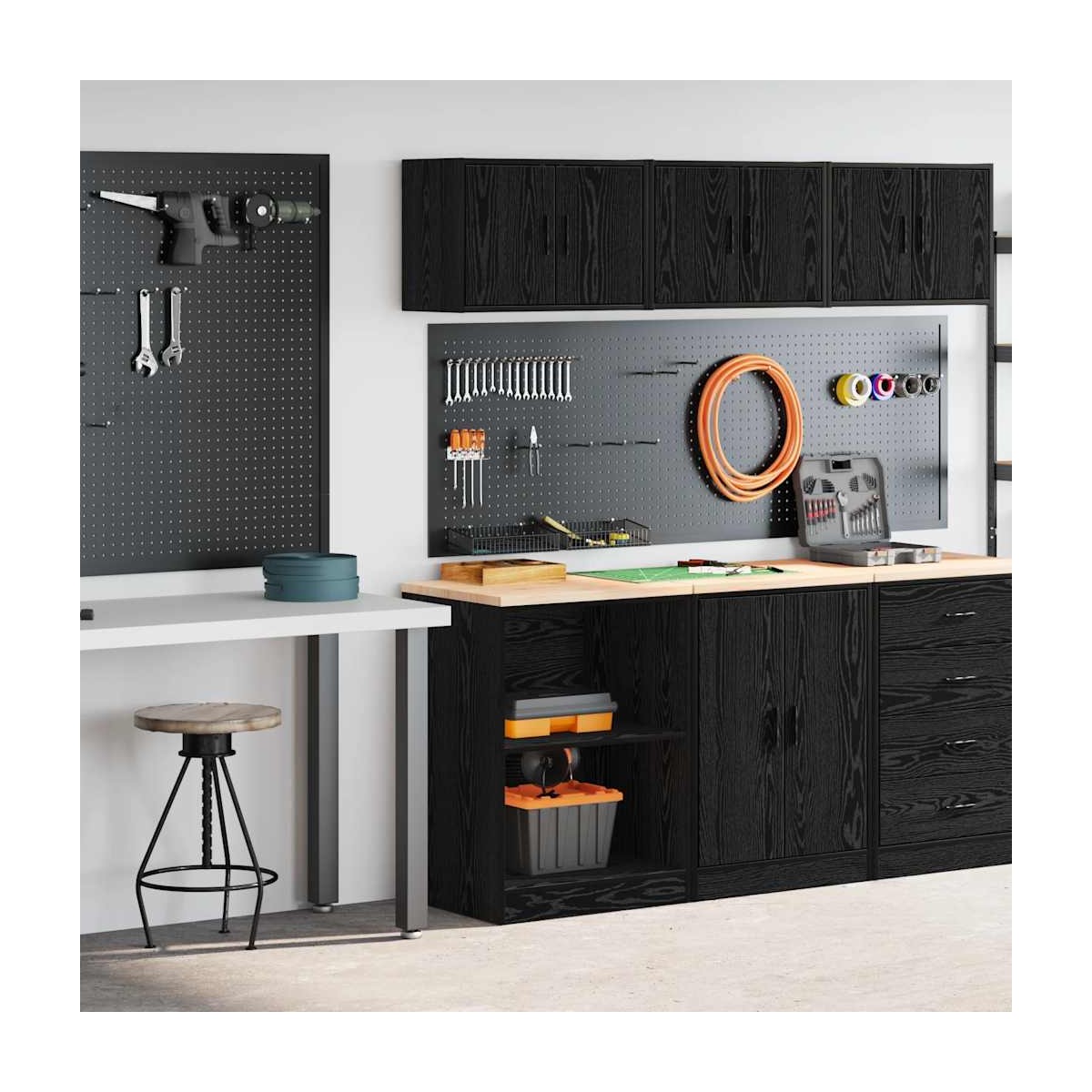 Estos armarios de garaje son una excelente opción para organizar todas sus herramientas y materiales de bricolaje en el garaje, trastero o taller. Durable y de larga duración: este gabinete de garaje está hecho de madera de pino duradera y madera de ingeniería, lo que garantiza estabilidad y robustez para un uso duradero.Amplio espacio de almacenamiento: este gabinete de herramientas le permite mantener sus herramientas de uso frecuente a su alcance, lo que hace que sea conveniente acceder a todo lo que necesita para su próximo proyecto.Superficie de trabajo versátil: la encimera de madera proporciona una superficie resistente para diversas tareas, como reparaciones, montajes o proyectos de bricolaje.Fácil de mantener: Gracias a su superficie lisa, el armario es fácil de limpiar con un paño húmedo y requiere menos mantenimiento.Amplias aplicaciones: este gabinete de almacenamiento de garaje proporciona mucho espacio seguro, lo que lo hace ideal para organizar artículos en diversos entornos, como garajes, oficinas, lavaderos, despensas, sótanos o talleres.Opciones de montaje flexibles: Las puertas del compartimiento se pueden instalar a la izquierda o a la derecha según tu conveniencia y hábitos personales. Información útil:Los tornillos y los tacos para el interior de la pared no están incluidos. Recomendamos encontrar y utilizar tornillos y tacos adecuados específicamente para las paredes. Si no estás seguro, puedes consultar con un profesional. Lee y sigue cada paso de las instrucciones. Advertencia:Para evitar que vuelque, este producto debe usarse con el dispositivo de fijación a la pared suministrado.