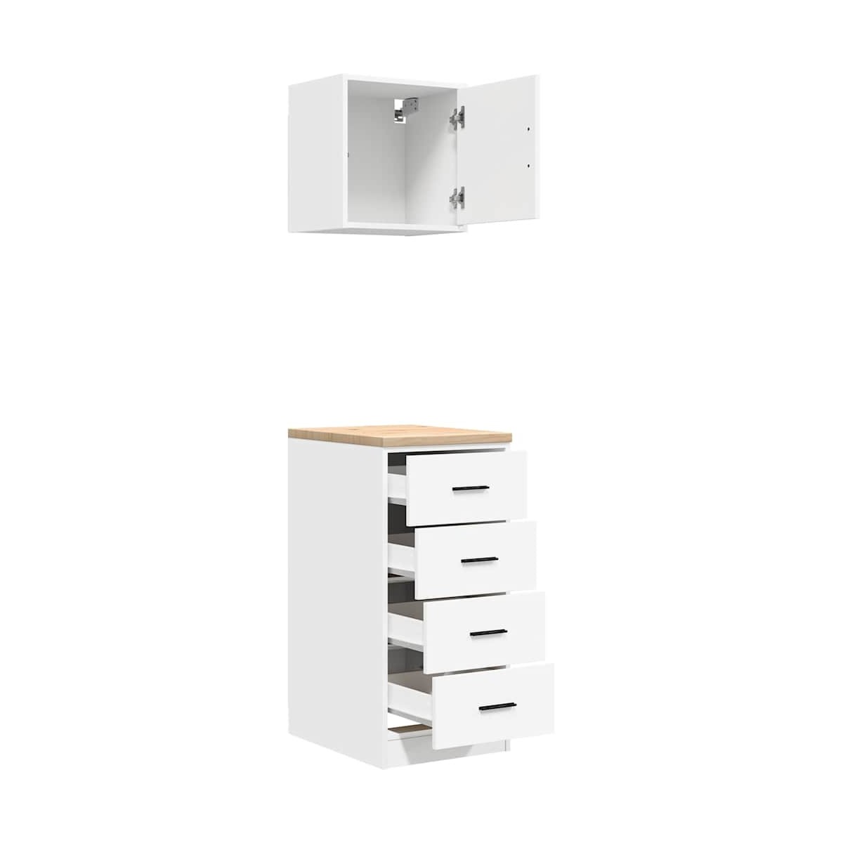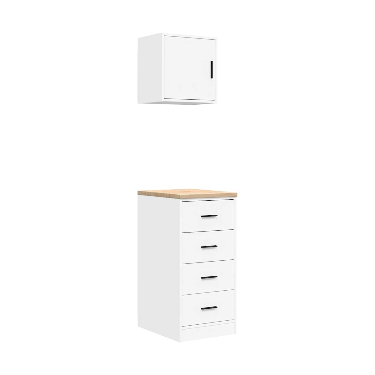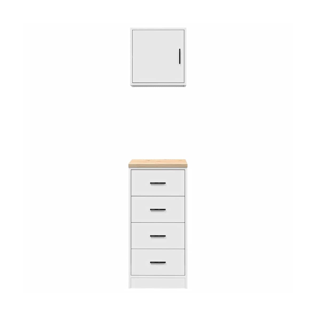 Estos armarios de garaje son una excelente opción para organizar todas sus herramientas y materiales de bricolaje en el garaje, trastero o taller. Durable y de larga duración: este gabinete de garaje está hecho de madera de pino duradera y madera de ingeniería, lo que garantiza estabilidad y robustez para un uso duradero.Amplio espacio de almacenamiento: este gabinete de herramientas le permite mantener sus herramientas de uso frecuente a su alcance, lo que hace que sea conveniente acceder a todo lo que necesita para su próximo proyecto.Superficie de trabajo versátil: la encimera de madera proporciona una superficie resistente para diversas tareas, como reparaciones, montajes o proyectos de bricolaje.Fácil de mantener: Gracias a su superficie lisa, el armario es fácil de limpiar con un paño húmedo y requiere menos mantenimiento.Amplias aplicaciones: este gabinete de almacenamiento de garaje proporciona mucho espacio seguro, lo que lo hace ideal para organizar artículos en diversos entornos, como garajes, oficinas, lavaderos, despensas, sótanos o talleres.Opciones de montaje flexibles: Las puertas del compartimiento se pueden instalar a la izquierda o a la derecha según tu conveniencia y hábitos personales. Información útil:Los tornillos y los tacos para el interior de la pared no están incluidos. Recomendamos encontrar y utilizar tornillos y tacos adecuados específicamente para las paredes. Si no estás seguro, puedes consultar con un profesional. Lee y sigue cada paso de las instrucciones. Advertencia:Para evitar que vuelque, este producto debe usarse con el dispositivo de fijación a la pared suministrado.