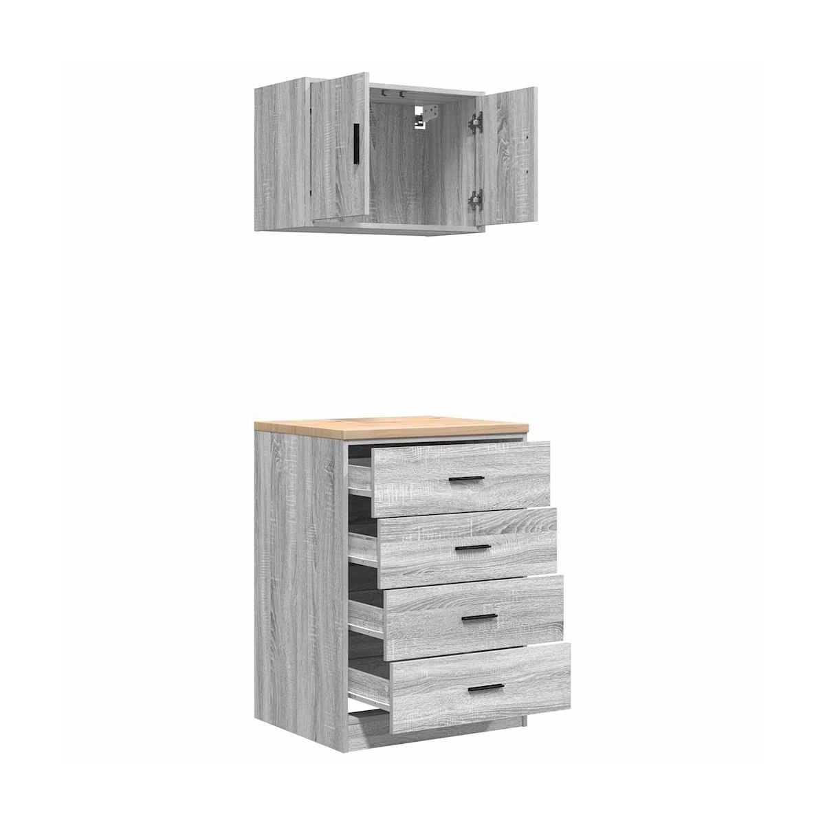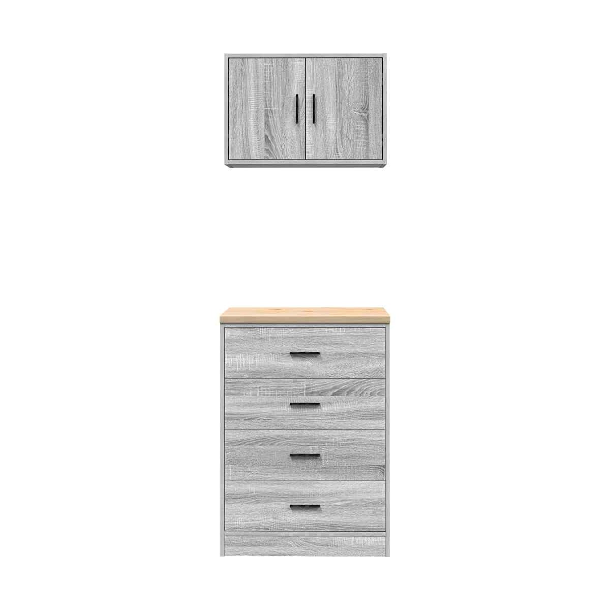 Estos armarios de garaje son una excelente opción para organizar todas sus herramientas y materiales de bricolaje en el garaje, trastero o taller. Durable y de larga duración: este gabinete de garaje está hecho de madera de pino duradera y madera de ingeniería, lo que garantiza estabilidad y robustez para un uso duradero.Amplio espacio de almacenamiento: este gabinete de herramientas le permite mantener sus herramientas de uso frecuente a su alcance, lo que hace que sea conveniente acceder a todo lo que necesita para su próximo proyecto.Superficie de trabajo versátil: la encimera de madera proporciona una superficie resistente para diversas tareas, como reparaciones, montajes o proyectos de bricolaje.Fácil de mantener: Gracias a su superficie lisa, el armario es fácil de limpiar con un paño húmedo y requiere menos mantenimiento.Amplias aplicaciones: este gabinete de almacenamiento de garaje proporciona mucho espacio seguro, lo que lo hace ideal para organizar artículos en diversos entornos, como garajes, oficinas, lavaderos, despensas, sótanos o talleres.Opciones de montaje flexibles: Las puertas del compartimiento se pueden instalar a la izquierda o a la derecha según tu conveniencia y hábitos personales. Información útil:Los tornillos y los tacos para el interior de la pared no están incluidos. Recomendamos encontrar y utilizar tornillos y tacos adecuados específicamente para las paredes. Si no estás seguro, puedes consultar con un profesional. Lee y sigue cada paso de las instrucciones. Advertencia:Para evitar que vuelque, este producto debe usarse con el dispositivo de fijación a la pared suministrado.