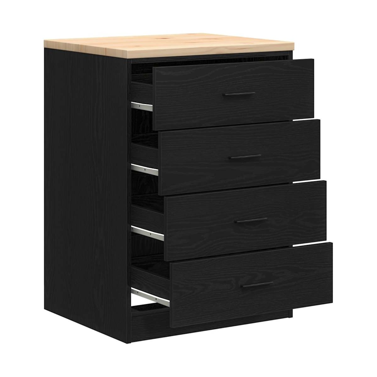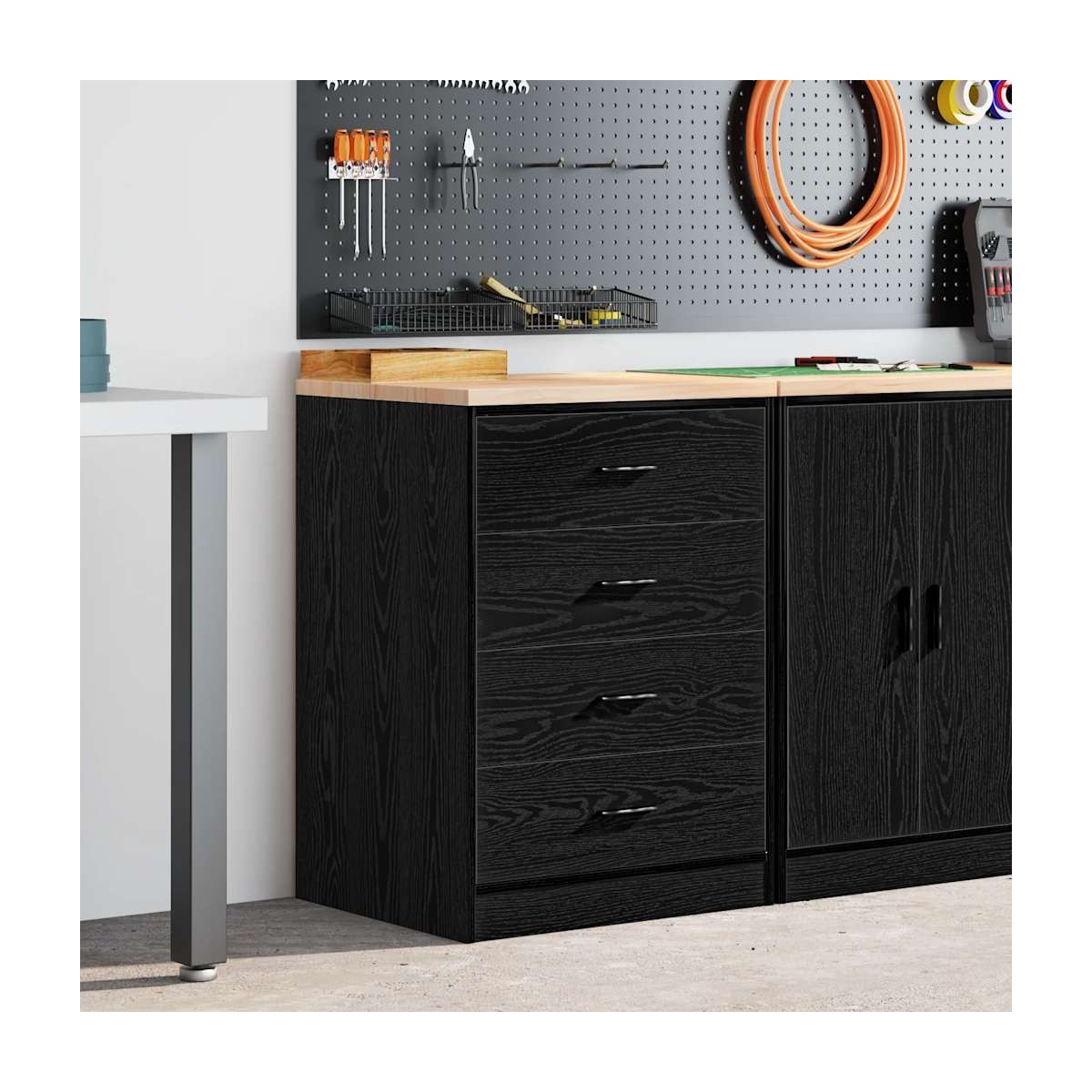 Este armario de almacenamiento de garaje es una excelente opción para organizar todas sus herramientas y materiales de bricolaje en el garaje, el trastero o el taller. Durable y de larga duración: este gabinete de garaje está hecho de madera de pino duradera y madera de ingeniería, lo que garantiza estabilidad y robustez para un uso duradero.Amplio espacio de almacenamiento: con cuatro cajones espaciosos, este gabinete de herramientas le permite mantener las herramientas de uso frecuente al alcance de la mano, lo que hace que sea conveniente acceder a todo lo que necesita para su próximo proyecto.Superficie de trabajo versátil: la encimera de madera proporciona una superficie resistente para diversas tareas, como reparaciones, montajes o proyectos de bricolaje.Fácil de mantener: Gracias a su superficie lisa, el armario es fácil de limpiar con un paño húmedo y requiere menos mantenimiento.Amplias aplicaciones: este gabinete de almacenamiento de garaje proporciona mucho espacio seguro, lo que lo hace ideal para organizar artículos en diversos entornos, como garajes, oficinas, lavaderos, despensas, sótanos o talleres. Advertencia:Para evitar que vuelque, este producto debe usarse con el dispositivo de fijación a la pared suministrado.