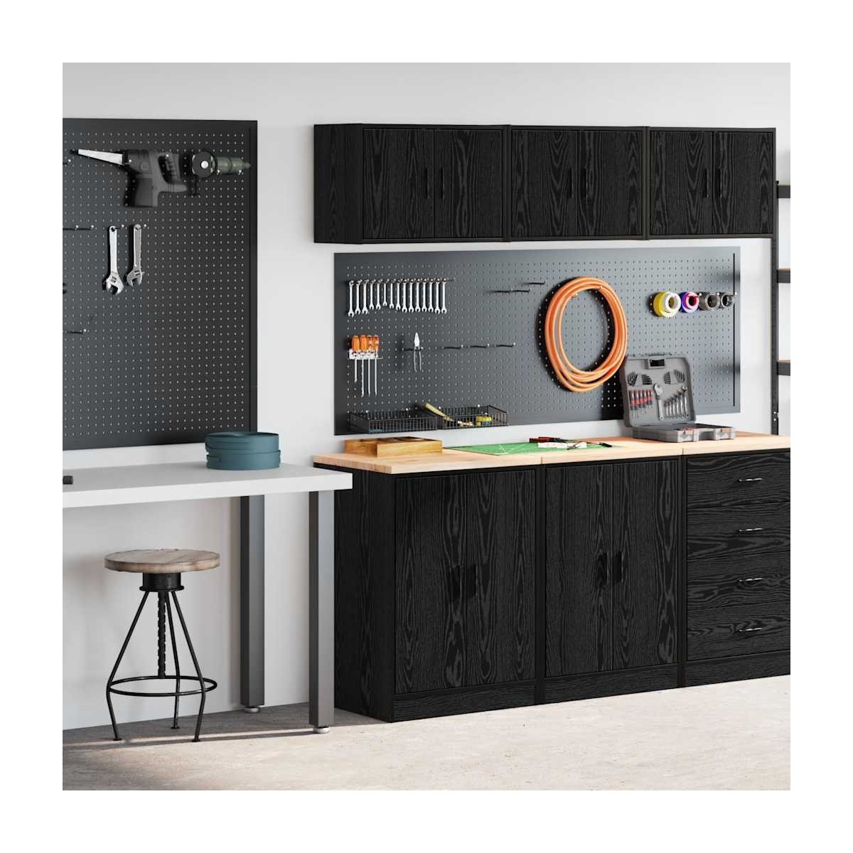 Estos armarios de garaje son una excelente opción para organizar todas sus herramientas y materiales de bricolaje en el garaje, trastero o taller. Durable y de larga duración: este gabinete de garaje está hecho de madera de pino duradera y madera de ingeniería, lo que garantiza estabilidad y robustez para un uso duradero.Amplio espacio de almacenamiento: este gabinete de herramientas le permite mantener sus herramientas de uso frecuente a su alcance, lo que hace que sea conveniente acceder a todo lo que necesita para su próximo proyecto.Superficie de trabajo versátil: la encimera de madera proporciona una superficie resistente para diversas tareas, como reparaciones, montajes o proyectos de bricolaje.Fácil de mantener: Gracias a su superficie lisa, el armario es fácil de limpiar con un paño húmedo y requiere menos mantenimiento.Amplias aplicaciones: este gabinete de almacenamiento de garaje proporciona mucho espacio seguro, lo que lo hace ideal para organizar artículos en diversos entornos, como garajes, oficinas, lavaderos, despensas, sótanos o talleres.Opciones de montaje flexibles: Las puertas del compartimiento se pueden instalar a la izquierda o a la derecha según tu conveniencia y hábitos personales. Información útil:Los tornillos y los tacos para el interior de la pared no están incluidos. Recomendamos encontrar y utilizar tornillos y tacos adecuados específicamente para las paredes. Si no estás seguro, puedes consultar con un profesional. Lee y sigue cada paso de las instrucciones. Advertencia:Para evitar que vuelque, este producto debe usarse con el dispositivo de fijación a la pared suministrado.