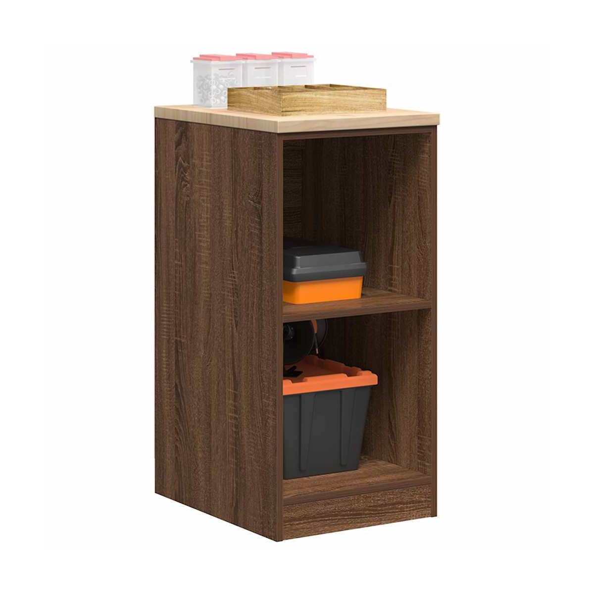 Este armario de almacenamiento de garaje es una excelente opción para organizar todas sus herramientas y materiales de bricolaje en el garaje, el trastero o el taller. Durable y de larga duración: este gabinete de garaje está hecho de madera de pino duradera y madera de ingeniería, lo que garantiza estabilidad y robustez para un uso duradero.Amplio espacio de almacenamiento: con 2 estantes de almacenamiento, este gabinete de herramientas le permite mantener sus herramientas de uso frecuente a su alcance, lo que hace que sea conveniente acceder a todo lo que necesita para su próximo proyecto.Superficie de trabajo versátil: la encimera de madera proporciona una superficie resistente para diversas tareas, como reparaciones, montajes o proyectos de bricolaje.Fácil de mantener: Gracias a su superficie lisa, el armario es fácil de limpiar con un paño húmedo y requiere menos mantenimiento.Amplias aplicaciones: este gabinete de almacenamiento de garaje proporciona mucho espacio seguro, lo que lo hace ideal para organizar artículos en diversos entornos, como garajes, oficinas, lavaderos, despensas, sótanos o talleres. Advertencia:Para evitar que vuelque, este producto debe usarse con el dispositivo de fijación a la pared suministrado.