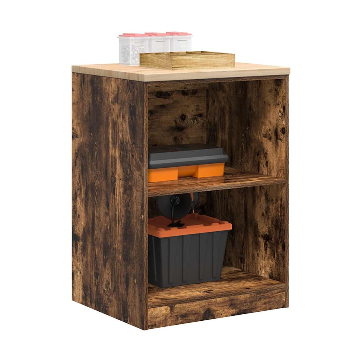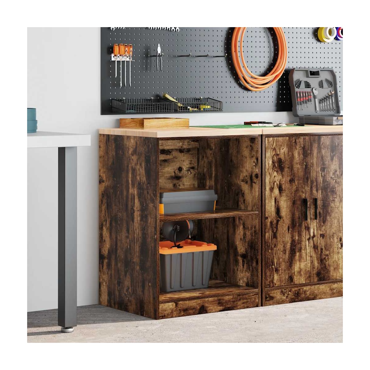 Este armario de almacenamiento de garaje es una excelente opción para organizar todas sus herramientas y materiales de bricolaje en el garaje, el trastero o el taller. Durable y de larga duración: este gabinete de garaje está hecho de madera de pino duradera y madera de ingeniería, lo que garantiza estabilidad y robustez para un uso duradero.Amplio espacio de almacenamiento: con 2 estantes de almacenamiento, este gabinete de herramientas le permite mantener sus herramientas de uso frecuente a su alcance, lo que hace que sea conveniente acceder a todo lo que necesita para su próximo proyecto.Superficie de trabajo versátil: la encimera de madera proporciona una superficie resistente para diversas tareas, como reparaciones, montajes o proyectos de bricolaje.Fácil de mantener: Gracias a su superficie lisa, el armario es fácil de limpiar con un paño húmedo y requiere menos mantenimiento.Amplias aplicaciones: este gabinete de almacenamiento de garaje proporciona mucho espacio seguro, lo que lo hace ideal para organizar artículos en diversos entornos, como garajes, oficinas, lavaderos, despensas, sótanos o talleres. Advertencia:Para evitar que vuelque, este producto debe usarse con el dispositivo de fijación a la pared suministrado.
